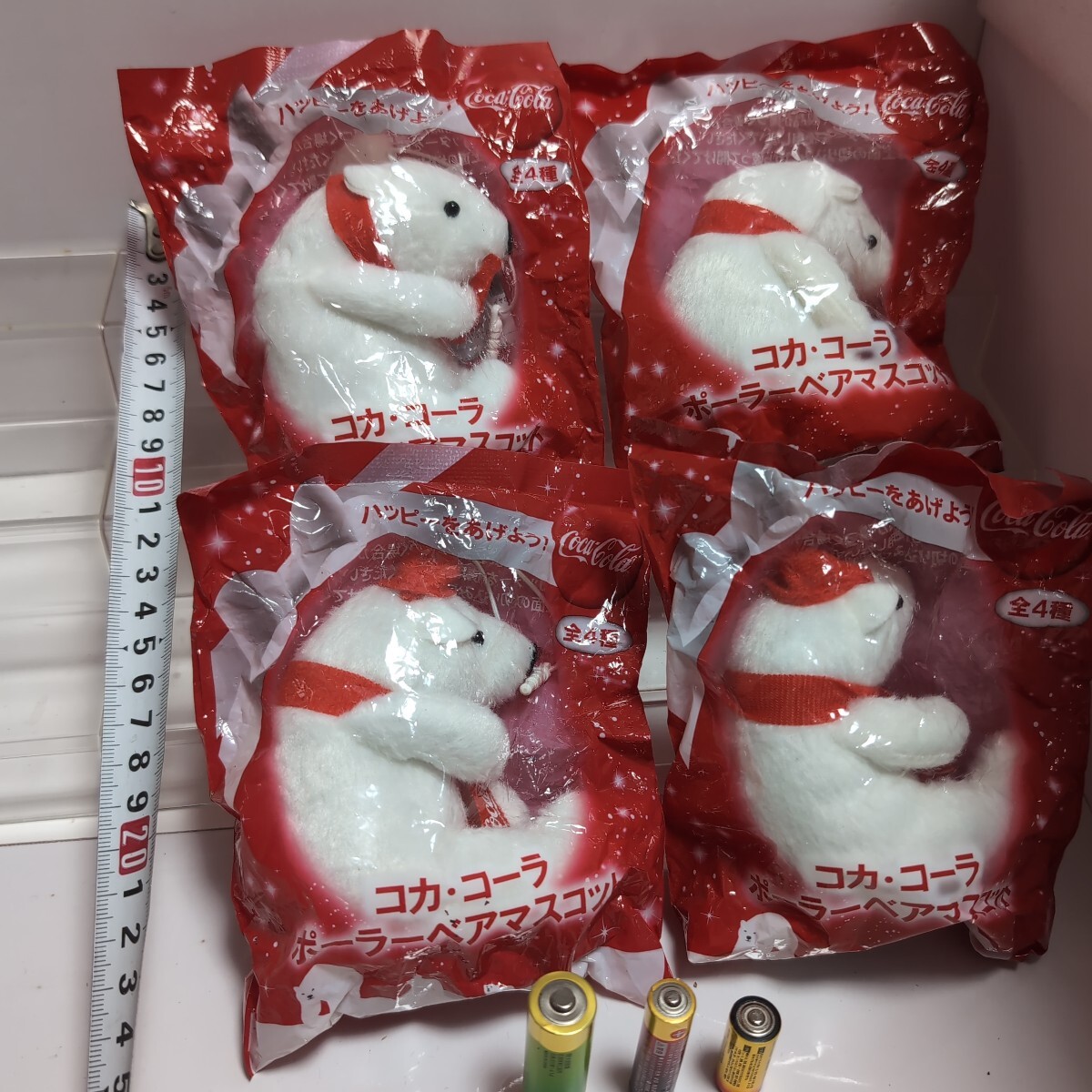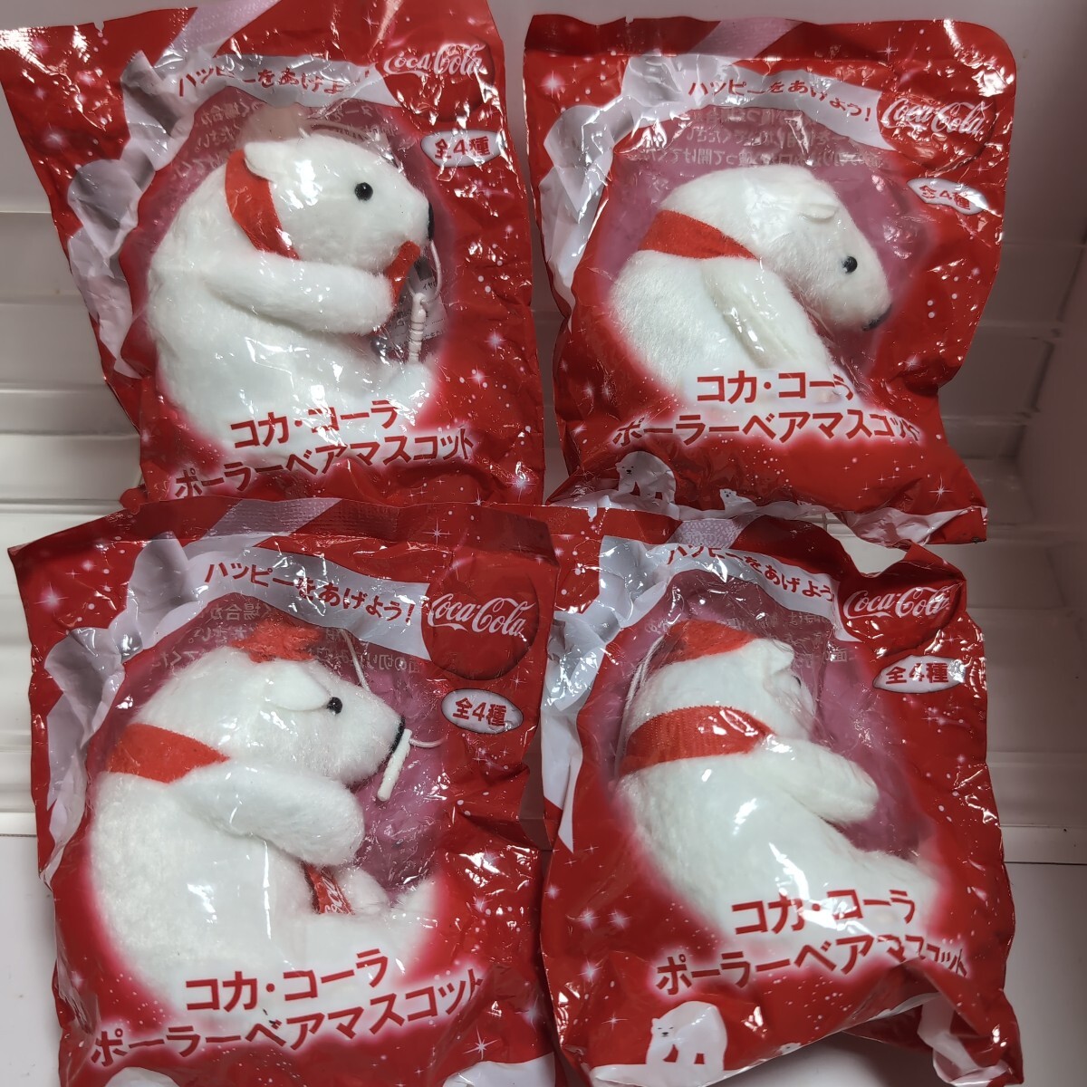 SINCE1922。ハッピーをあげよう。! ポーラベアは、1922年に、Coca-Colaの広告へ、初めて登場しました。それからは、いまだに、広く愛されるキャラクターと、成っております。 今回の4種類は、赤い帽子を被って、赤いマフラーに、Coca-Colaのロゴが、入っている子と、入っていない子。赤い帽子無しで、赤いマフラーに、Coca-Colaのロゴが、入っている子と、入っていない子の、4種類です。 これからの季節は、お家の、クリスマスツリーや、デコレートに、ピッタリだと思います。セットにしての、お届けです。 送料は無料です。