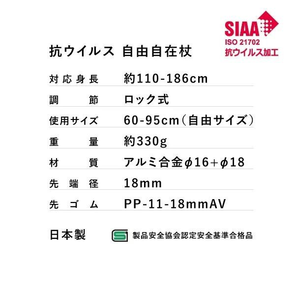| 毎日握るグリップと、地面・床と接地する先ゴムに抗ウイルス機能を付与することで、 ご自宅や訪問先でのウイルス感染リスクを減らし安心な外出をサポートいたします。また、素材自体に抗ウイルス素材を練り込んでいるため、抗菌・抗ウイルス性能はゴムが擦り切れるまで、半永久的に効果が持続します。 【◎片手でもOK!簡単サイズ調節機構】 自由自在は「引っ張るだけ」、「つまんで下げるだけ」で簡単にサイズ調節が可能。 片麻痺など、片手が不自由な方でもご自身で杖の長さを合わせる事ができます。 【◎最短60cm!使わないときも邪魔にならない】 60cmまで短くできるので電車やバスなどでの移動時にも邪魔にならず、ご自宅での保管もコンパクトに。 サッと短くして、サッと伸ばせるので杖を必要としない瞬間も快適にご使用いただけます。 【◎握りやすさを追求したグリップ】 欧米に比べ、比較的に小柄な日本人の手に合わせたグリップ形状は、握りやすく高い安定感が特徴。 疲れにくいだけでなく、歩行時の手の痛みも和らげます。 また、シナノの代名詞である「スリムネック」形状と、手のひらに当たる部分へのシボ加工を採用。 握力の弱い方も握りやすく、濡れても滑りにくい快適なグリップで安心な歩行をサポートします。 【消毒について】 ※アルコール消毒可能なグリップですが、アルコール消毒後はすぐに拭き取って下さい。 ※変色・色落ちする可能性がございます。 【注意事項】 ※先ゴムの交換目安は、滑り止め効果のある先端の溝がなくなった頃です。 ※抗ウイルス・抗菌加工は、病気の治療や予防を目的とするものではありません。 ※棒状杖は、つえなしで自立歩行ができる人がより安定して歩行できるよう、補助的に使用するものです。 つえなしでは歩行できない方の使用には適しておりません。 ※商品は、改良等のため、価格や仕様、デザインを予告なく変更させて頂くことがあります。 ※また、状況により生産の中止、部品等の変更をさせて頂くことがあります。 |