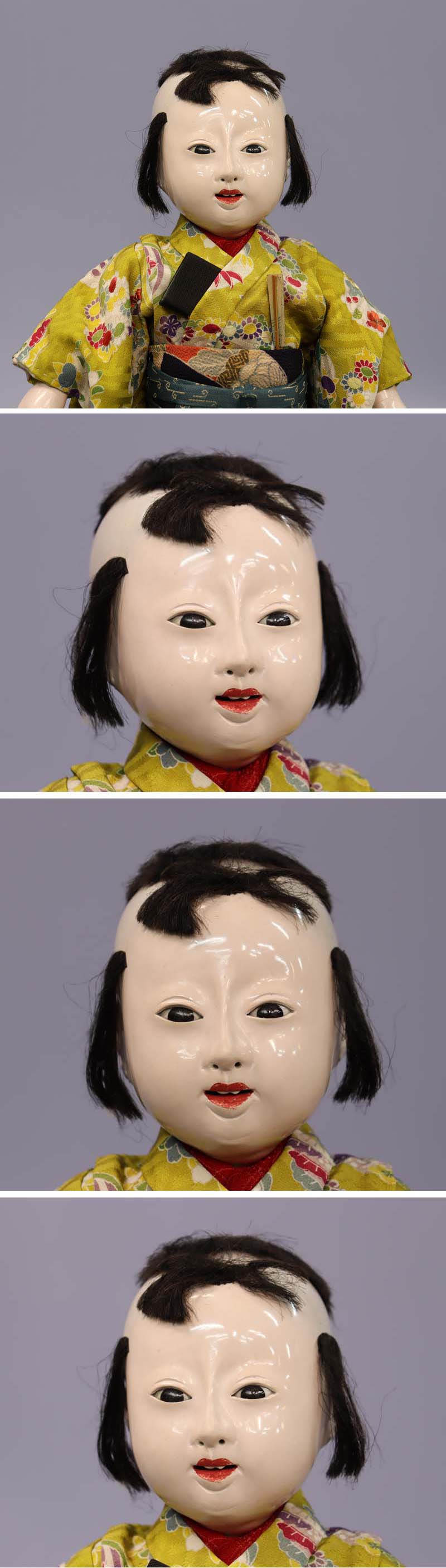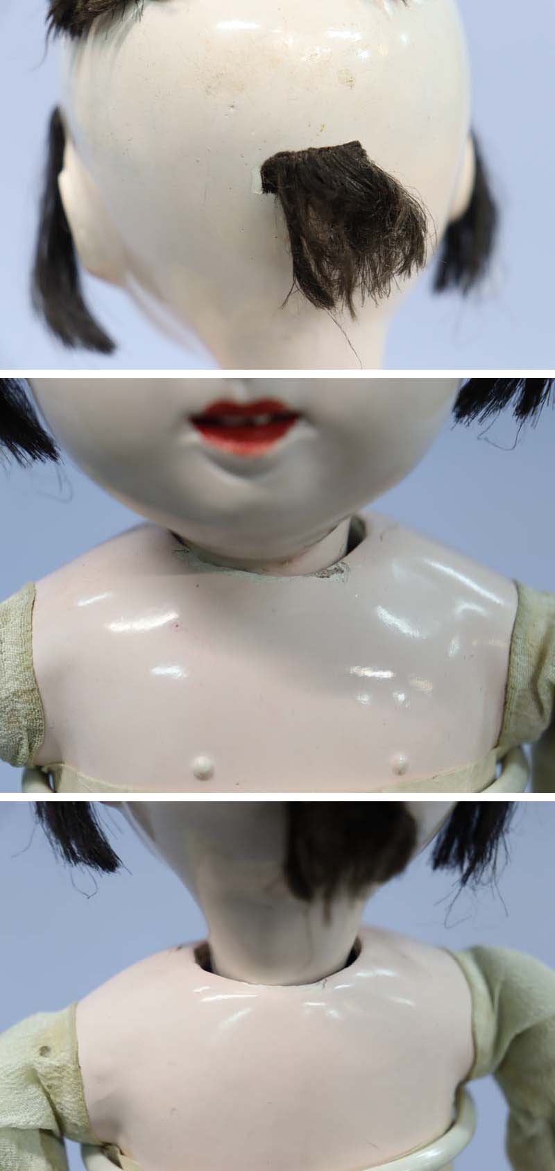 髪は絹のスガ糸製。右の鼻の穴に極々細かい色ハゲがあります(お顔アップ画像参照)。