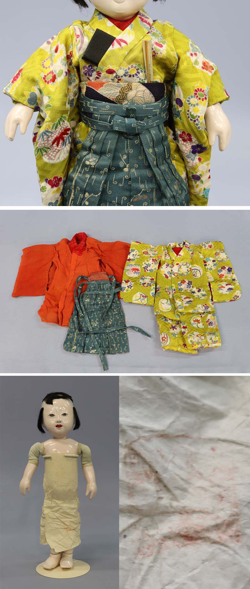 明治期のお人形です。消えかかっておりますが、胴紙に【光豊】の印があります。
