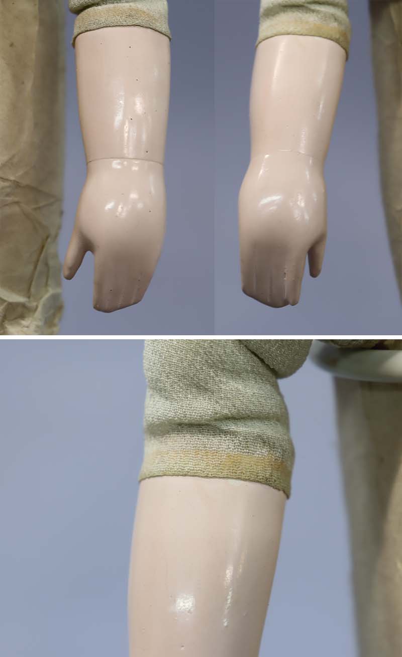 お顔、ボディとも胡粉の塗りが厚く、丁寧に磨かかれており、硬くてツヤの良い肌です。