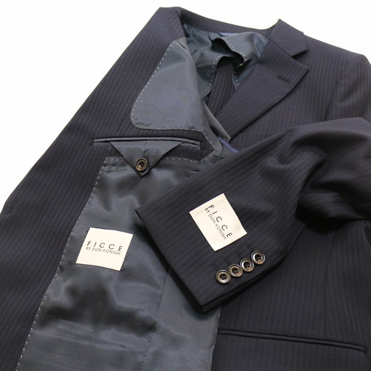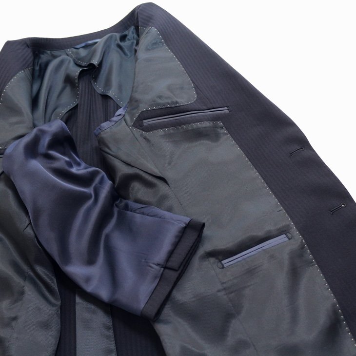 ラペルAMFステッチ(無し)背抜き仕立て・薄肩パット入り・袖口4つボタン 袖口裏額縁仕上・ピンポンステッチ・ボタンX止め・汗止め・チョーシック 生産国:中国製*仕上げプレスは、国内で施しております。 |