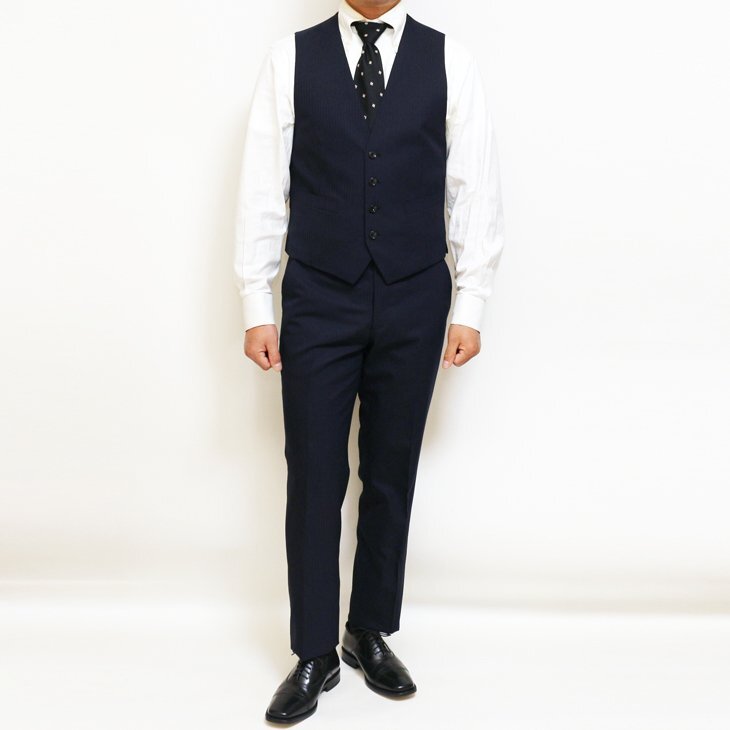 | デザイン | 2つボタン・センターベント・4つボタンベスト・ノータックローライズパンツ | |||||||||||