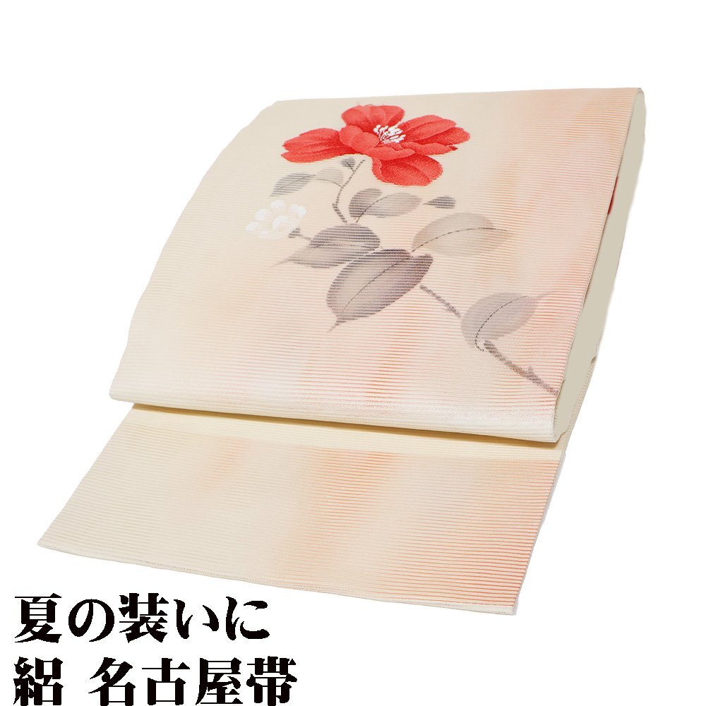 | 色・柄 | 絽 名古屋帯 夏帯 クリーム・サーモンピンク暈し地 縫い取り花柄 上品な名古屋帯です。 (写真では上手く色が出ない場合があります。ご了承下さい) ※お使いのディスプレイの種類や設定の差により 実物の色と画像の色が少々異なることもございます。 |