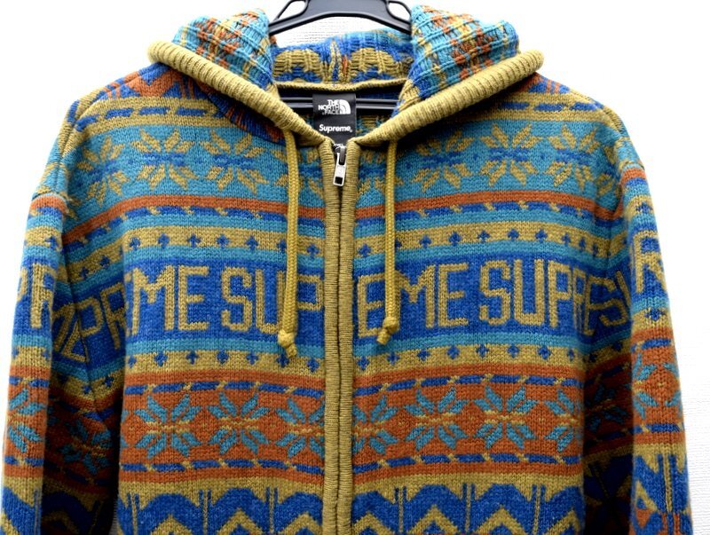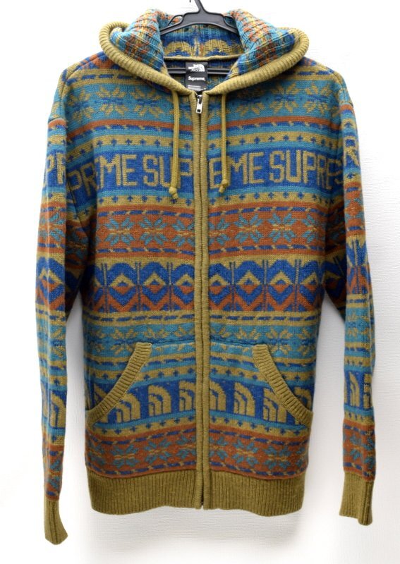 Supreme × THE NORTH FACE 【ノルディック柄 総柄 ニット パーカー SIZE:M 】カラー:グリーン系総柄 ------------------------------------ 素材:ウール100% ------------------------------------ 管理番号:19856 |