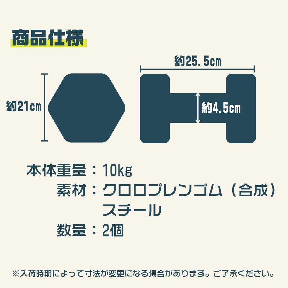 | フィットネスから筋力トレーニングなど、様々なエクササイズに最適なダンベルです。 クロロプレンゴム仕様で握りやすい! コンパクトなサイズ、明るくポップなカラーデザインになっているので、女性にオススメなアイテムです。 【商品仕様】 カラー:ライトグレー サイズ(約):幅25.5cm×奥行22.5cm×高さ21cm 重量(約):10kg(1個) 材質:クロロプレンゴム(合成ゴム)、スチール 【商品内容】 カラーダンベル 10kg ×2個 ※重量の表記は目安となります。若干の誤差が出る場合がありますのでご了承ください。 ※ダンベルを引きずるなど、接触・摩擦によって他製品へ色移りする可能性がありますのでご注意ください。 |