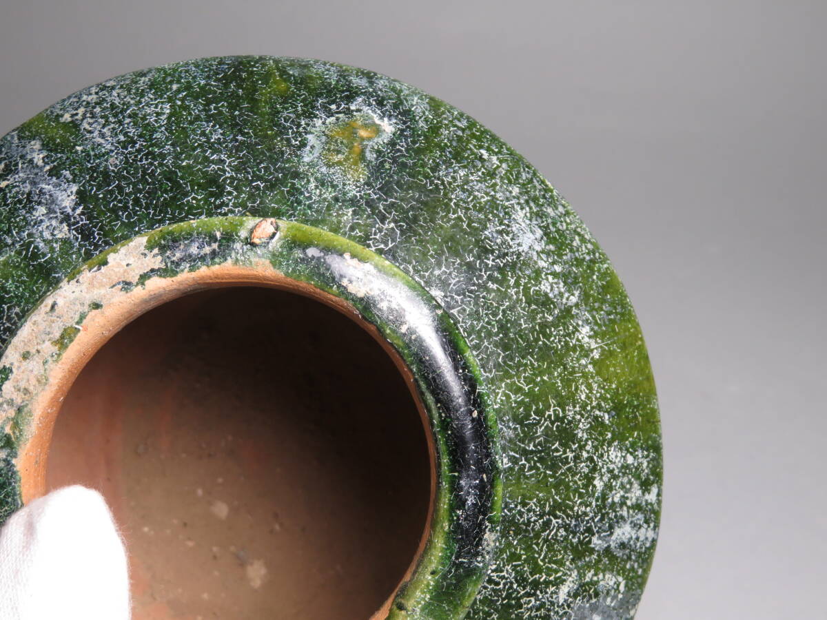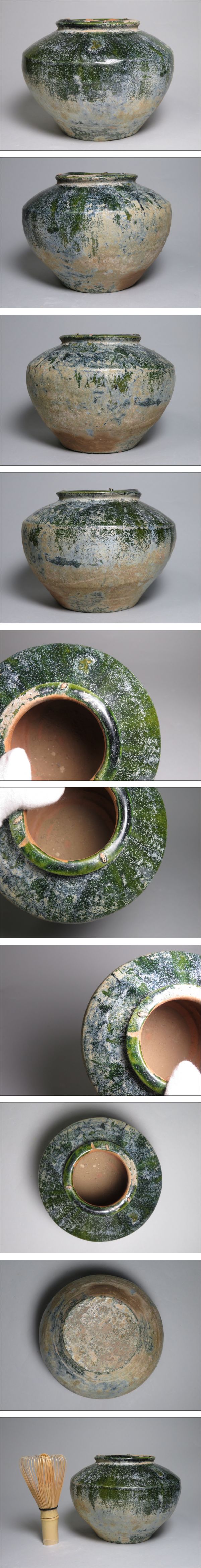 | 「都内コレクター所蔵品」7-3 漢時代 緑釉銀化壷 中国美術 東漢時代 ◆加彩 花瓶 発掘 彩文土器 彩陶壺 | ||