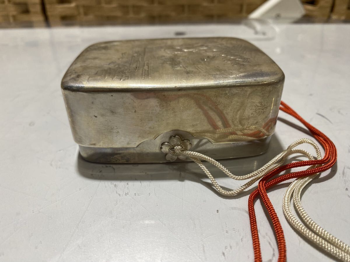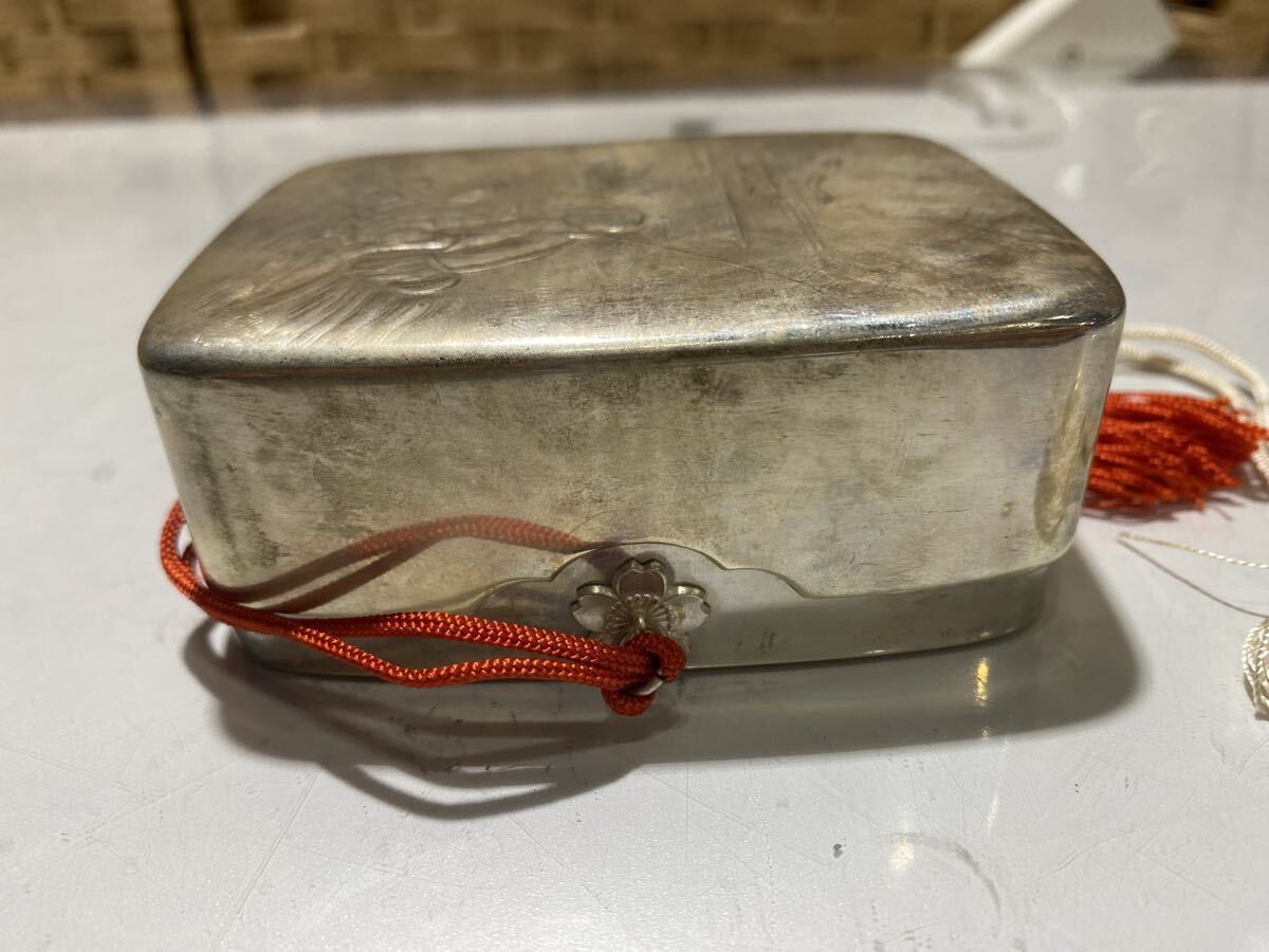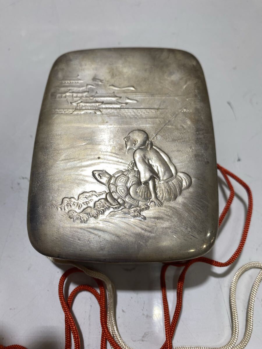 | 61474【自宅保管品】富国徴兵保険相互会社 洋銀浦島太郎文玉手箱型煙草入 菓子器 ボンボニエール 小物入 蓋物 | ||