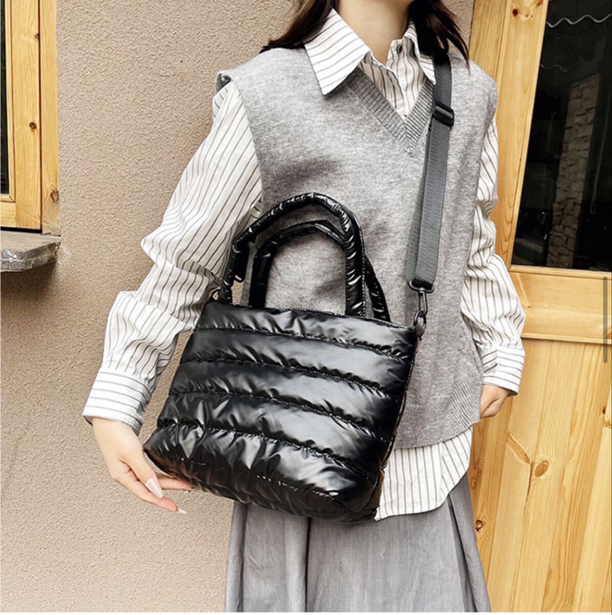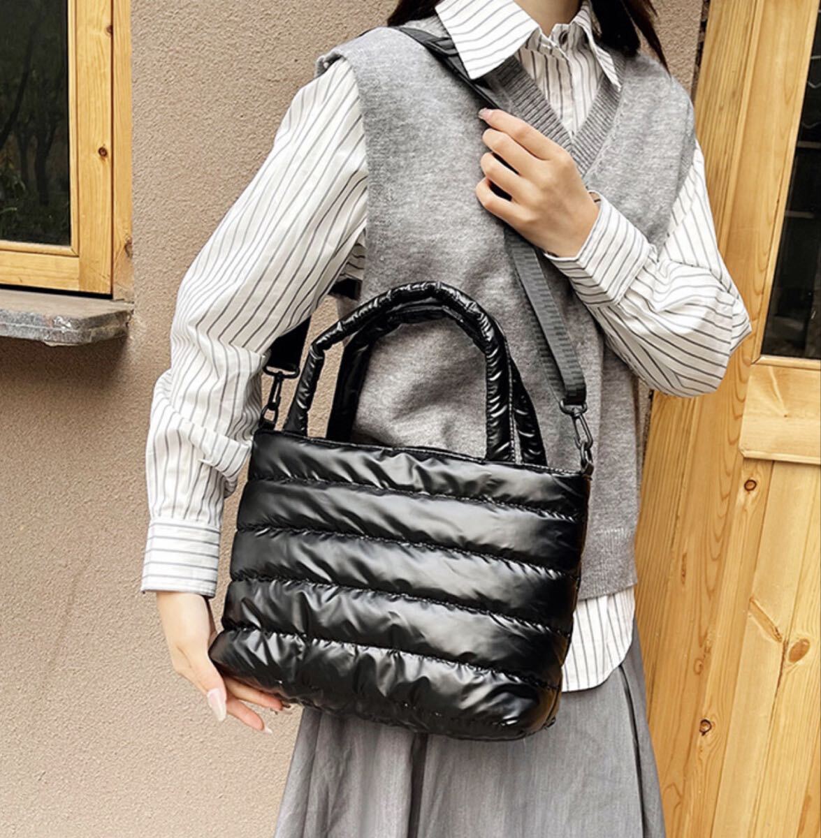 ナイロン製のブラックショルダーバッグ、キルティングデザインでスタイリッシュ。| 出价者 | 信用 | 价格 | 时间 |