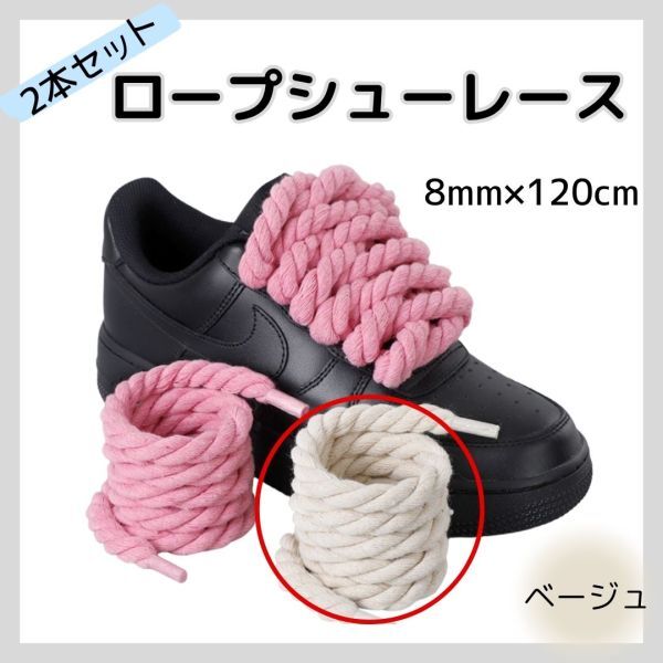 ロープシューレース 靴紐 極太 スニーカー カスタム おしゃれ 韓国ファッション ストリート エアフォース1 ダンク ナイキ ジョーダン スタンスミス コンバース 靴ひも ロープ紐 太め 結びやすい ほどけにくい 8mm 120cm ユニセックス 男女兼用 学生 ファッション小物 カジュアル 衣装 ダンス イベント 原宿系 インスタ映え プチプラ カスタムパーツ 流行アイテム スニーカーカスタム 黒 白 ピンク ベージュ グレー 人気色 替え紐 靴紐交換 ローカット ミッドカット 高見え プレゼント ギフト 衣装小物 コーディネート シンプルデザイン 普段使い