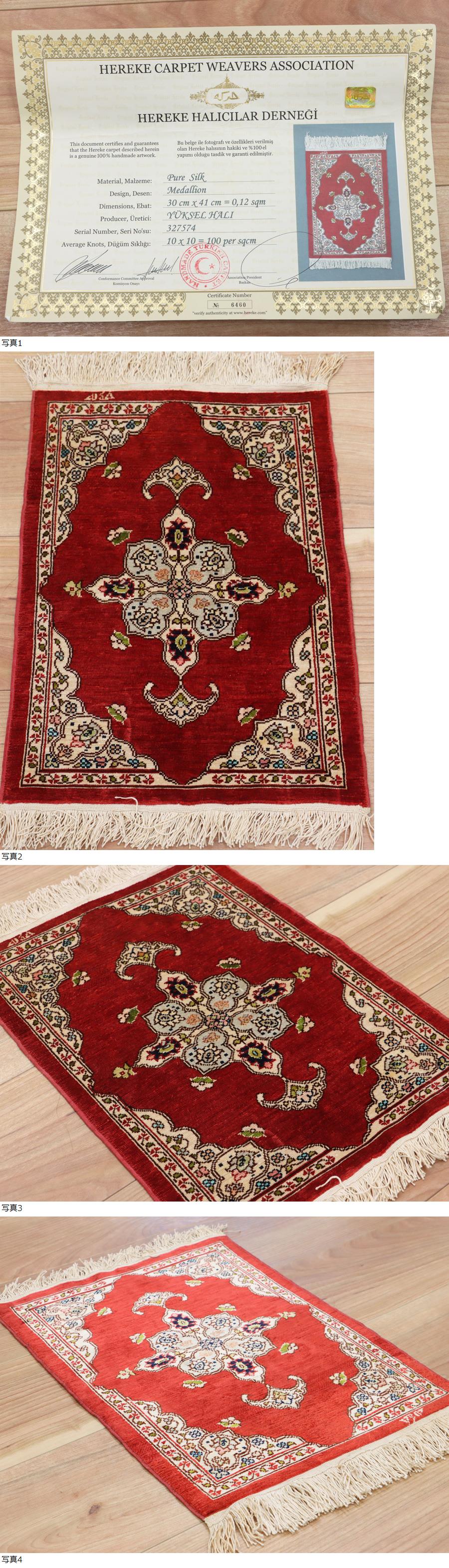 サイズ(約) 30×41㎝(フリンジ含まず)/厚み 3㎜ 付属品 証明書 高級トルコ絨毯 ヘレケ 工房サイン シルク100% 手織り100万ノット 30×41㎝ メダリオン 証明書付き 本物保証 トルコヘレケ絨毯でございます。 細密手織り100万ノットの上質なお品です。 シルク100% 手織り100万ノット 工房サイン入り 状態ですが、使用感の見られない綺麗なお品です。 一度人手に渡ったものがほとんどの為、生活臭や保管臭等、臭いの付着があるものもございます。 臭いに関しては感じ方に個人差があるため、臭いが強いものに関しては説明欄に記載いたします。以上をご理解の上ご入札をお願いいたします。 絨毯に関しましては基本的にキャンセルはお受けできかねます。十分ご検討いただき、ご納得いただいた上でのご入札をお願いいたします。 |