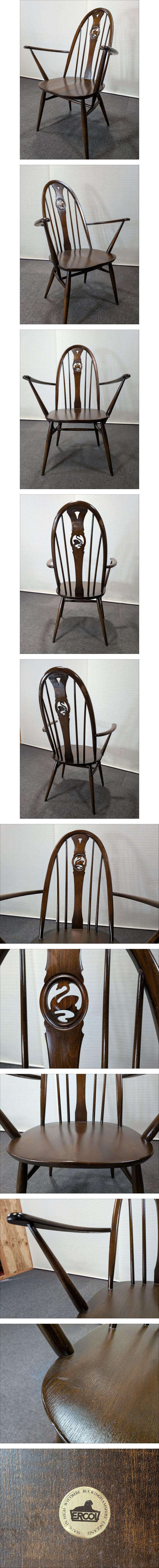 ■英国製/Ercol/アーコール/スワンチェア「両肘」透かし彫り/ブナ材■1981-1995■稀少■ウインザーチェア■ | |||