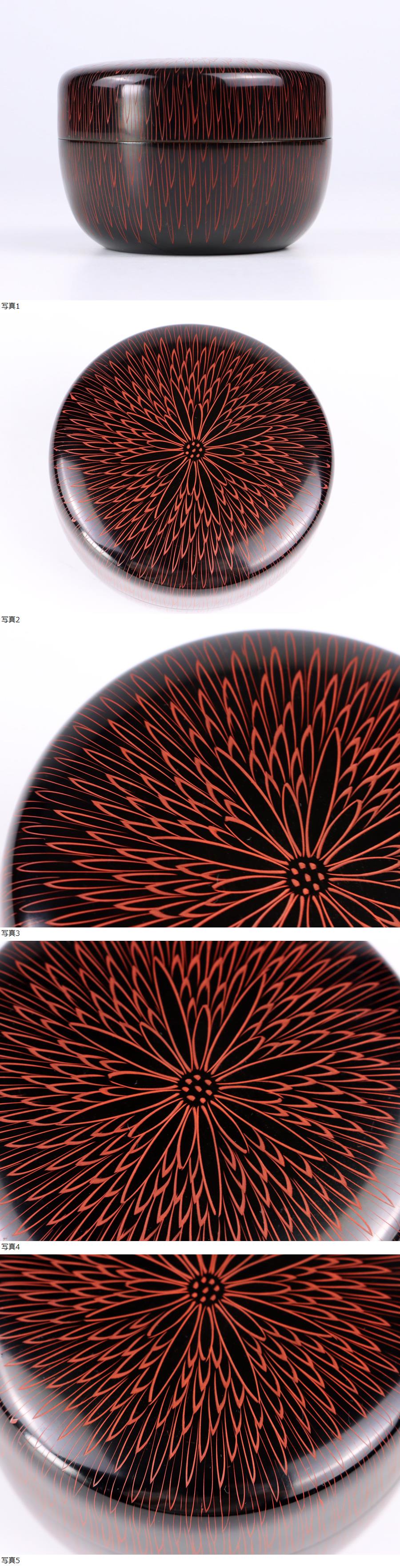 魁◆本物保証 新井司峰作 菊毛彫 大平棗 漆細工棗 共箱 未使用極上品! ma YY