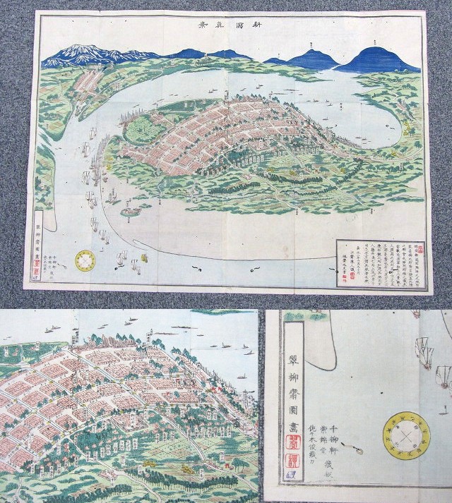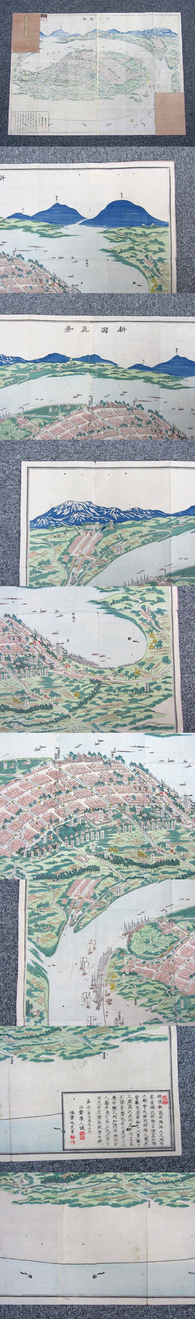 新潟真景 古地図 古文書 資料 約52.7×74.4cm【説明欄に詳細写真有り】の出品です。