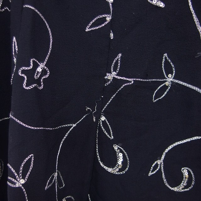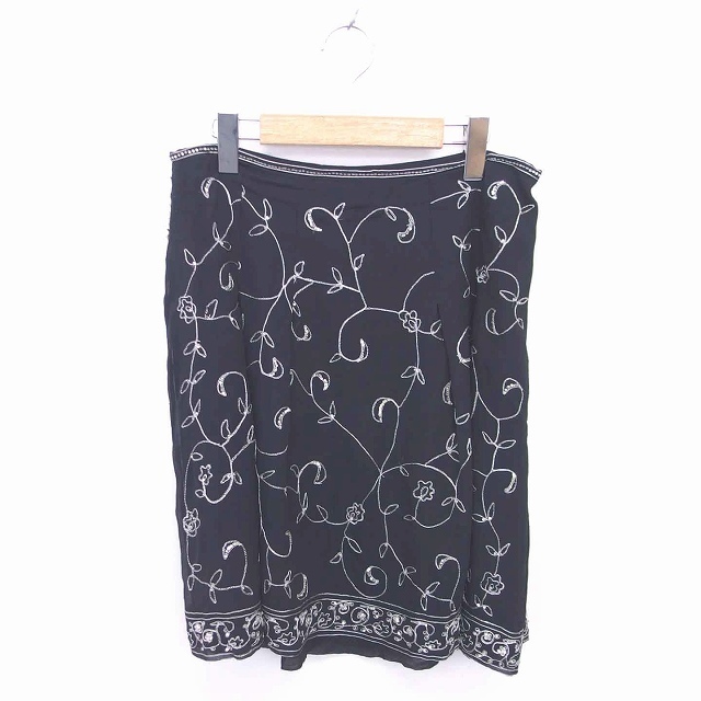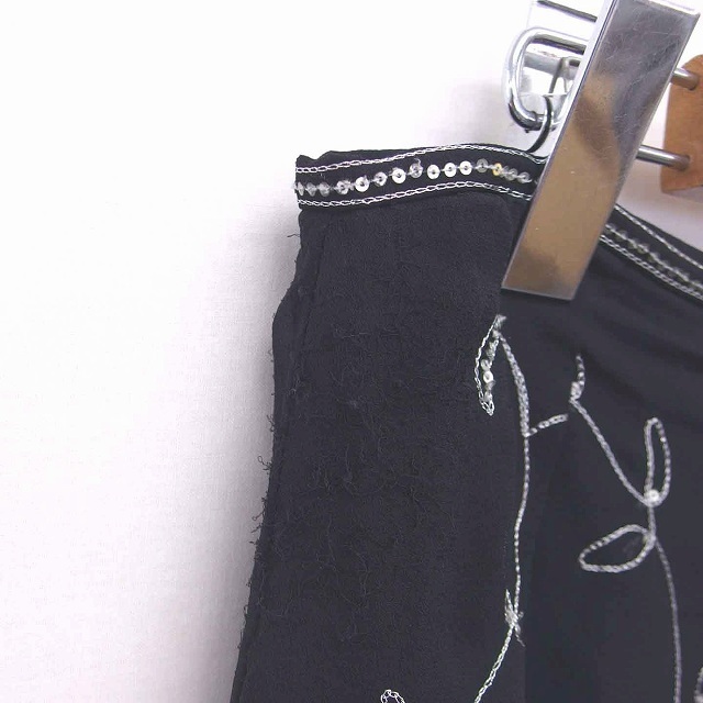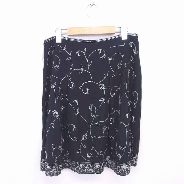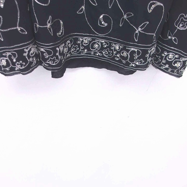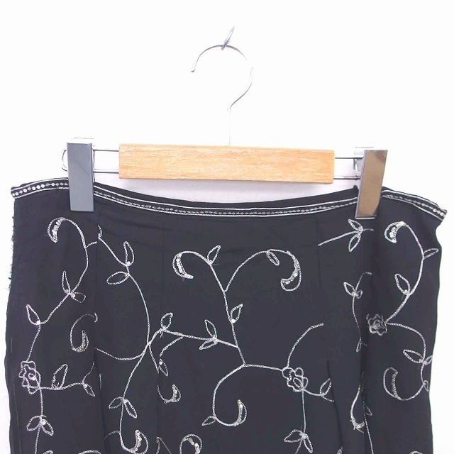 トッカ TOCCA フレア スカート ひざ丈 総柄 ビーズ装飾 刺繍 薄手 4 黒 ブラック /TT1 レディース