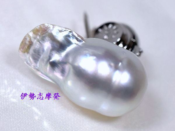 【真珠の種類】 南洋白蝶真珠 【珠サイズ】 22㎜x11,39㎜ 【珠の形状】 真珠+芥子 【色】 パールホワイトに、グリーンやブルーピンク 【巻き】 非常に良い◎ 【照り】 非常に良い◎ 【キズ】 サークル・ほとんど無し 【エクボ】 ほとんど無し 【金具の材質】 SV製パテントキャッチ ◆ぎらぎらと輝石感覚の眩しい煌きを放つ重厚な厚巻き珠!真珠+芥子がくっついた 美しい白蝶天然真珠、世界でたった一つインパクトのある真珠です。◆ メタリック光沢で半端ない輝き!濡れたような艶感と光り輝く光沢にうっとりの超美珠です♪タイタック&ピンブローチとしてもお使い頂けるツーウェイタイプ♪ お顔までも映し込む強力なミラータッチ!味のあるお洒落なフォルム♪腐りなど一切ございません。プレゼントにも是非お勧めします。 | ||||||||
