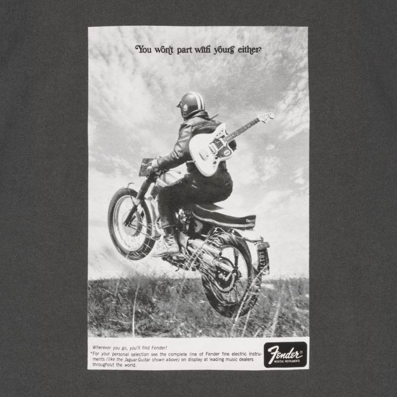 1960年に展開されたフェンダーの"You won't part with yours either"キャンペーンは、フェンダーギターを大切にするギタリストを強烈に惹きつけたもので、ミュージシャンと、ミュージシャンが使う楽器と深い感情的なつながりを表現したものでした。このアイコニックなキャンペーンのバイカーグラフィックをあしらったオーシャンブルーのTシャツを着て、フェンダーの歴史を味わいましょう。| 出价者 | 信用 | 价格 | 时间 |