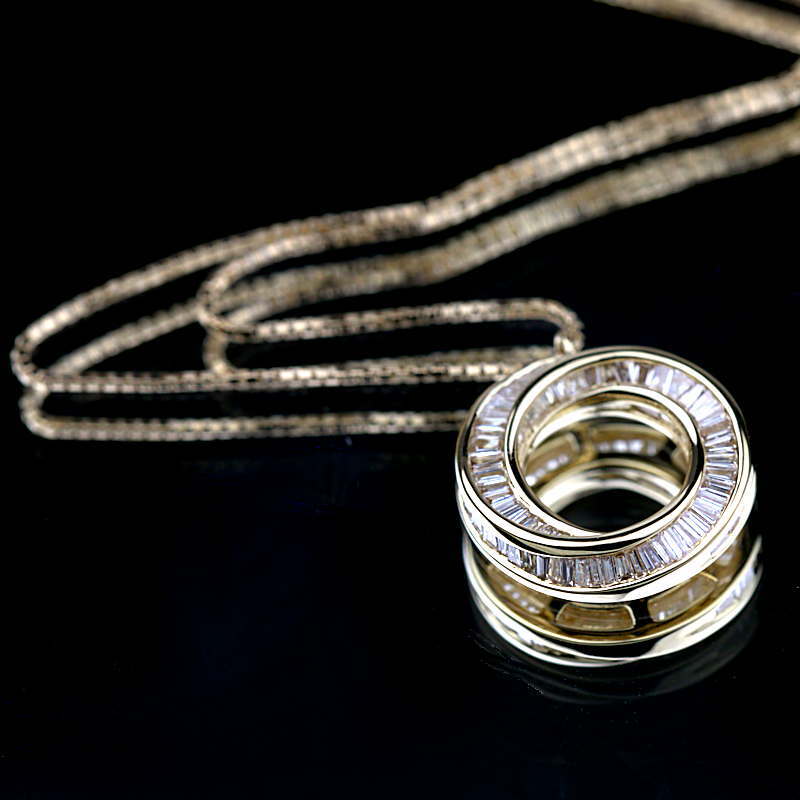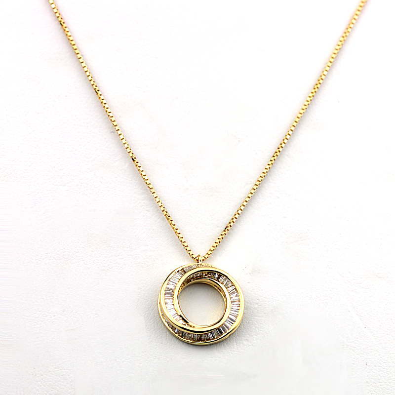 | コメント | 0.65カラットのダイヤモンドを全体に惜しみなく使用した豪華な一品です! 輝くダイヤモンドが胸元を華やかに、美しく飾ってくれます。 18金イエローゴールドを使用しておりますので、資産としてもお持ちいただけます。 |
