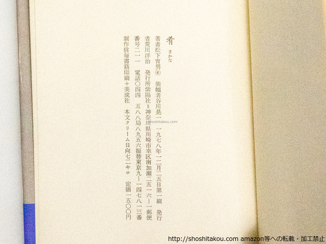 肴 松下育男詩集 初Vカカバ帯 署名入 / 松下育男 ◯当店在庫から「松下育男」の本を探す| ★ 発送方法 (送料無料) ・日本郵便のゆうパケット・レターパックライト・レターパックプラス・ゆうパックの中から荷姿の大きさに適した方法で発送します。(発送方法や到着日時はご指定いただけません。) ・上記発送方法はすべて追跡番号付き・土日配送有・速達扱いです。ゆうメールや定形外は発送に使用いたしません。 ・ゆうパケット・レターパックライトは郵便受けにお届け、レターパックプラス・ゆうパックは配達員対面受取です。防水梱包します。 ★ 必ずお読みください ・代金決済後の次の火木土に発送します。 ・ストア出品です。ご注文時に必要事項のご記入・決済いただいた後は、やり取り不要です。商品の到着をお待ち下さい。 ・肉筆物・美術作品は真作保証いたします。 ・商品のレファレンス(調べ物)サービスは行っておりません。また当店商品以外の無料鑑定は行っておりません。 |