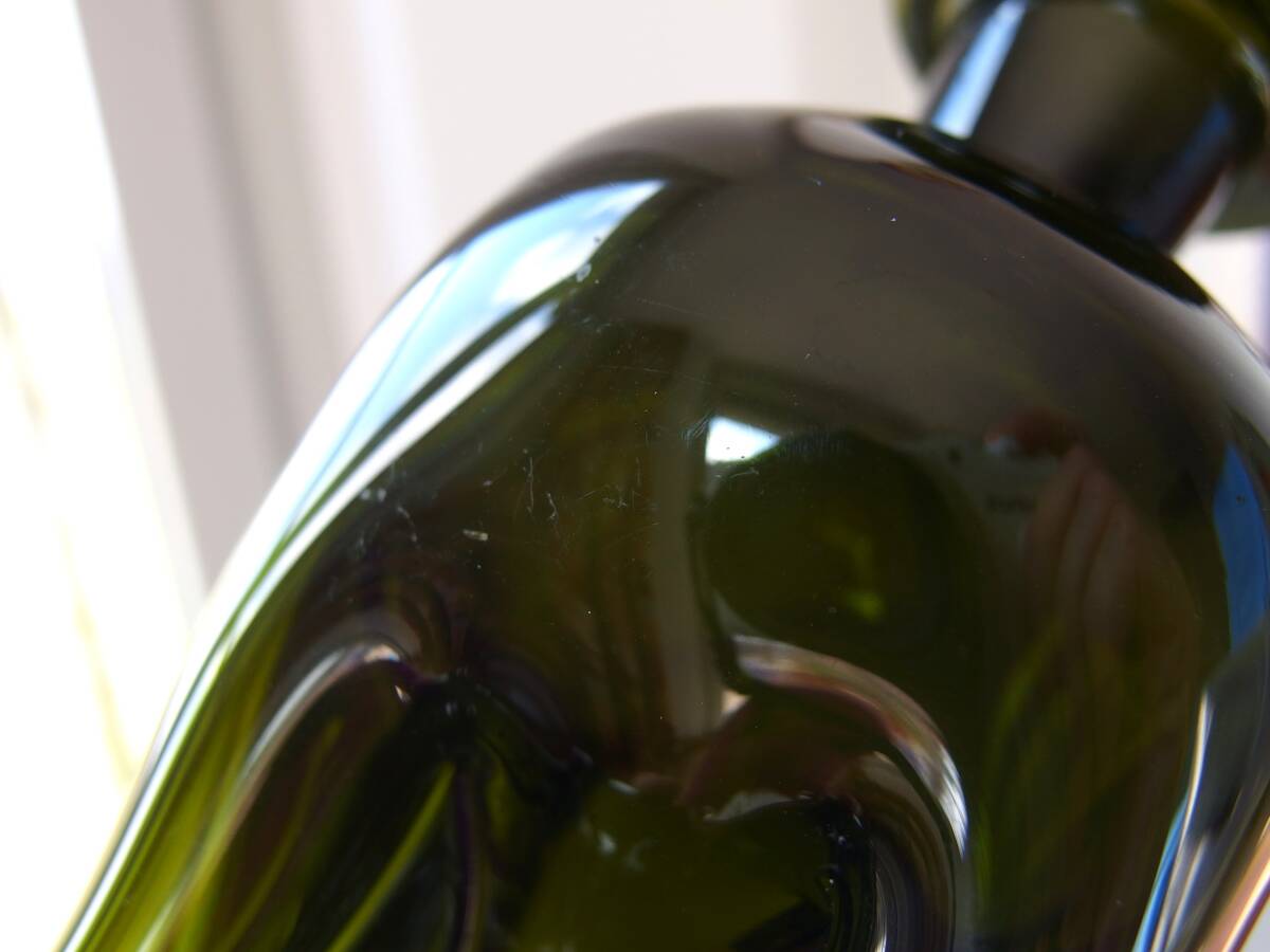![]() | 商品説明 デンマーク王室御用達で知られる、ガラスメーカー、ホルムガード製のデキャンタです。飲み物を注ぐときの音(クックックッ)から連想されて’Kluk Kluk'と呼ばれているそうです。 高さは約20㎝と大きいサイズになります。デザイナーは、Jacob Bang によるものです。 オリジナルのストッパが紛失しております。オリジナルのストッパーは丸い球体ですが、代わりにお付けする品は細長いフォルムです。 違和感がなくフィットしますが、あくまでもおまけと思ってください。 色ですが、オリーブグリーン、ダークグリーンになります。写真はすべて自然光で撮影しております。 光の加減やお使いのPCによって商品写真の色が異なる場合があります。 【状態】 ストッパーにカケあり。あくまでもおまけですので予めご了承ください。 デキャンタ自体にはカケひび割れといったダメージはありません。小傷が少し見られますがそれほど目立つものではなく、作品の雰囲気を損ねるものではありません。製造時にできた気泡あり。 総合的に見て、ガラスのくもりもなく特に大きなダメージのない良いヴィンテージコンディションです。 【注意】 ハンドメイドの品ですので、製造時に出来た気泡、ガラスのラインや凹凸といったイレギュラーがあったりします。予めご了承ください。 【お願い】 コンディションについては、なるべく詳細に記載していますが、細かいキズ擦れなど記載漏れがある場合がございます。 写真で状態を見て納得の上でのご購入をお願いします。 出品の品は古い上にユーズドの品です。ヴィンテージのユーズド品への理解のある方のみの入札をお願いします。 【サイズ】 (ボトルのみ)W7.5×D7.5×H20cm (ストッパー)L約7.5cm 素人採寸に付き、若干の誤差が生じます。 いずれの場合も返品はお受けしませんので神経質な方は、入札をご遠慮下さいませ。 他にもヴィンテージ品を多々出品中です。宜しかったらご覧下さい。 発送方法 ★割れ物ですので補償のあるゆうパックでの発送になります。住所によって送料は違ってまいります。発送は兵庫県からです。 [ ご注意ください ] 輸送途中における事故や破損、紛失などのトラブルに関して当方では一切の責任を負いかねます。 コメント ★お願い 落札されて連絡を下さらない方には悪い評価が付きます。落札後24時間内に連絡のできる方に限らせて頂きます。 不明な点等ございましたら落札前に聞いてください。落札後のキャンセルは大変迷惑ですので絶対におやめ下さい。 |