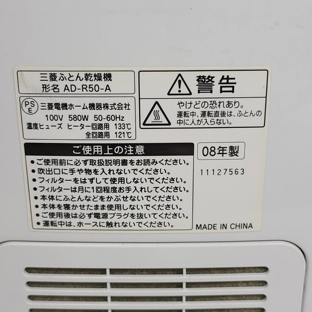 MITSUBISHIの布団乾燥機AD-R50-Aです。