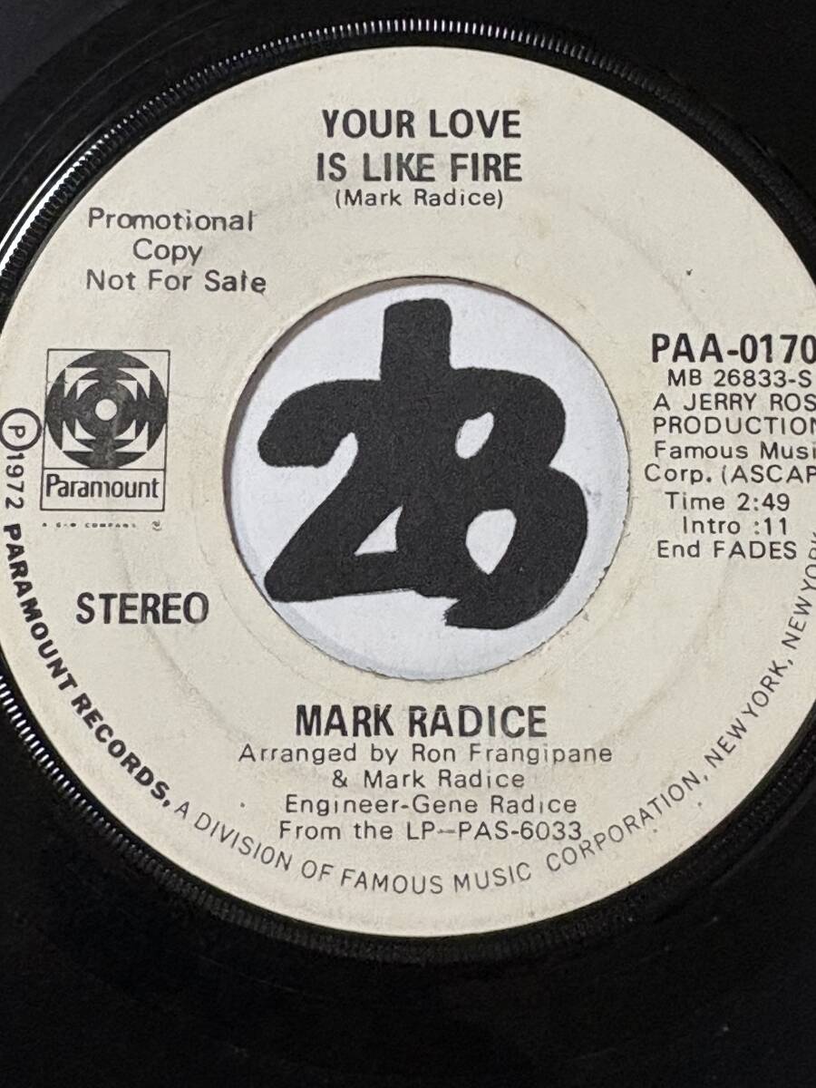 試聴 MARK RADICE YOUR LOVE IS LIKE FIRE 両面やや傷あり 1972