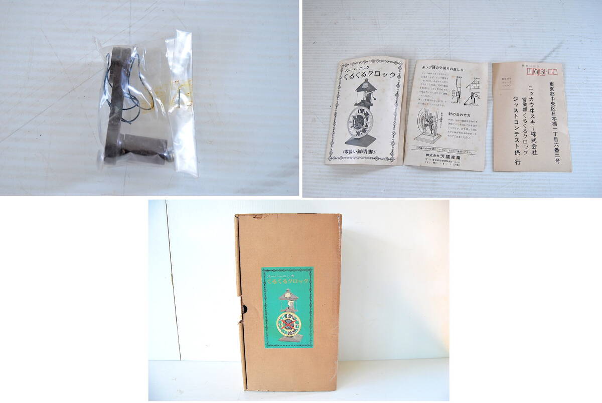| 商品説明 | ■入札前に必ず注意事項をお読みの上にてお願い致します。 スーパーニッカ くるくるクロック 懸賞品 非売品 保管品です。 開封時 未使用品だとおもいますが 確認がとれませんので 美品になります。 確認の為 開封 回転する笛吹人形部分がうごかないように背にあった 発砲スチロールを外したら 人形が回転して ゼンマイが回転して時計の針が 少しうごきました。 ゼンマイを回す ねじ回しが袋にはいっている状態でしたので 当方のほうで 改めてネジは回しておりません。 動作未確認 現状品での出品になります。 サイズ 約:高さ37×幅18.5×奥行13cm 保管箱に痛みがあり テープだ補修しております。 説明書記載内容 「今から約100年前 1883年頃 マドラー クーセンによって 考案された 大変 面白いアクションを持ったからくり時計です。 しかし、精度の点で、事実上 正確な時を刻むことは不可能に近いとされ 実用化されることなく今日に至っております。 勿論、動くルーム アクセサリーとして大変 ユニークなメカニズムですが、 さらなる遊びとして正確な時合わせに挑戦するのも、楽しんでいただける 一つと思われます 。」 ■掲載商品 コンディション G ~ ランク ■コンディション 表記 【N】⇒未使用品 。(未使用開封品も含む) 【S】⇒美品。極わずかに使用感・経年がある、非常に綺麗な品。 【A】⇒良品。使用感・経年は少しあるが、全体的に良好な印象を受ける品。 【B】⇒普通。使用感・経年は見受けられるが、通常使用において問題のない品。 【C】⇒大きなキズや汚れ・欠損箇所・軽い破損等は見受けられるが、通常使用に問題のない品。 【G】⇒現状渡し品。動作未確認品等。 【J】⇒ジャンク品。主要箇所に不具合の確認された品。 ■コンディションランクの基準は、検品時の主観となります。 ■付属品 ■お渡しする商品は写真掲載の状態が全てになります。 ■経年変化有 ■確認 ■掲載画像でご紹介しきれない(検品時に気が付かない) 経年劣化 によるキズ・スレ・傷み・汚れ錆 色あせ 他 落書 有 等があることがございます。 ■ノークレーム ノーリターン のご理解のある方お願いいたします。 |