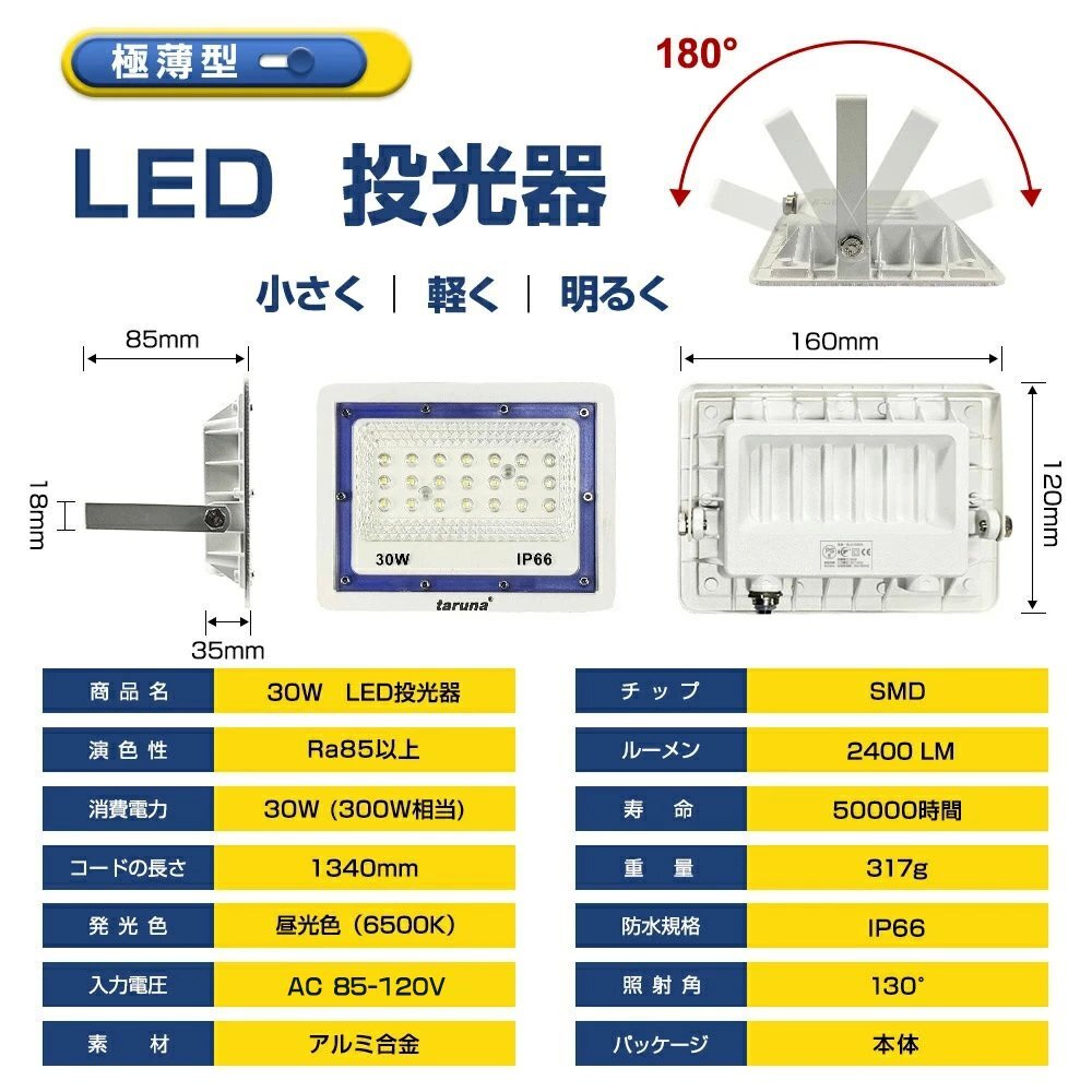 ◆軽薄化LED投光器: 1KG未満の軽量だから壁への負担を掛けずに壁掛けが可能、駆動内蔵設計で投光器の厚さはわずか2.8CMでよりスッキリと設置できます。 ◆高品質&長寿命: 動作環境-30℃~+60℃、湿度90%以下、どんな天気でも動作可能。耐寒性耐熱性に優れているの上、50000時間の長寿命を持つ ◆超高輝度投光器: 優高輝度LEDチップを搭載で明るさは抜群、ハロゲン、水銀灯より80%消費電力を節約できます。 ◆IP66ラベルの防水性能: 密封性に優れ、IP66相当の防塵防水性能を実現!場所を選ばず様々な用途の照明に使えます。 ◆驚きの長寿命: 本製品は50000時間以上の長寿命で、他の商品の2000時間を遥かに凌駕します。 ◆照射角度調整可能: 回転支えを使えて、お好みに照射角度を調整できます。 ◆広い使用範囲: トンネル、掲示板、ガソリンスタンド、夜間作業、現場工事、駐車場、公園、運動場にも様々な場所で活躍します!公園、運動、屋外や現場作業にも便利です!特に、夕暮れ時夜間作業にとても役立ちます! 虫が集まりにくいの も魅力です。 【保証】 ◆当商品は12っヶ月保証となります。 ◆お届けから1週間以内にご連絡のあった不良品の保証対応の送料は当方が負担いたします。 ◆保証期間内の不良品ですが、交換のみ対応しております。往復送料はお客様負担となります。在庫がない時だけ返金しますので、ご了承ください。 |