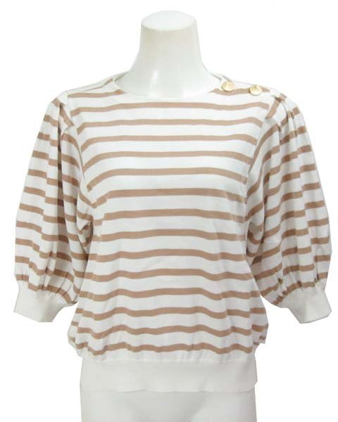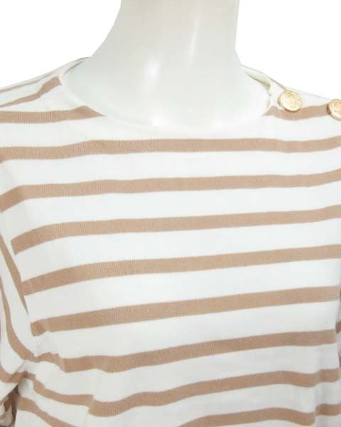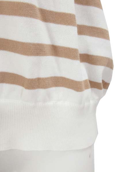 | 商品名 | 白 茶 ボーダー 7分袖 ニット 36 |