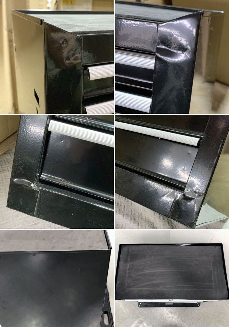 | こちらの商品は未使用品です。 ★正面の四角に打痕や変形がございます。 ★上面に擦れ傷、側面に傷がございます。 ■元の箱に傷やスレ、テープ剥がれがございます。 ■アウトレット品につき、本体に軽い擦れや印刷物に多少の傷みが ある場合がございます。その分、お安くご提供させて頂きますので ご了承の上、お買い求め下さい。 ※トラブル防止の為にも程度は画像を見てご判断下さい。 付属品:キャスター 鍵 ハンドル ランク【S】 新品や未開封品・未使用品 (撮影の為の開封品含む) | 本体寸法:約 665×375×720mm 本体重量:約 23.5kg 上段2段:約 520×250×450mm 下段5段:約 520×250×900mm |
