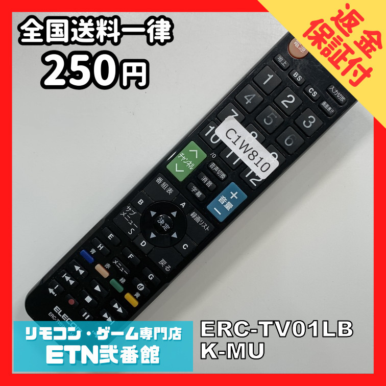 C1W810 【送料250円】 TV リモコン / ELECOM エレコム ERC-TV01LBK-MU 動作確認済み★即発送★ テレビ