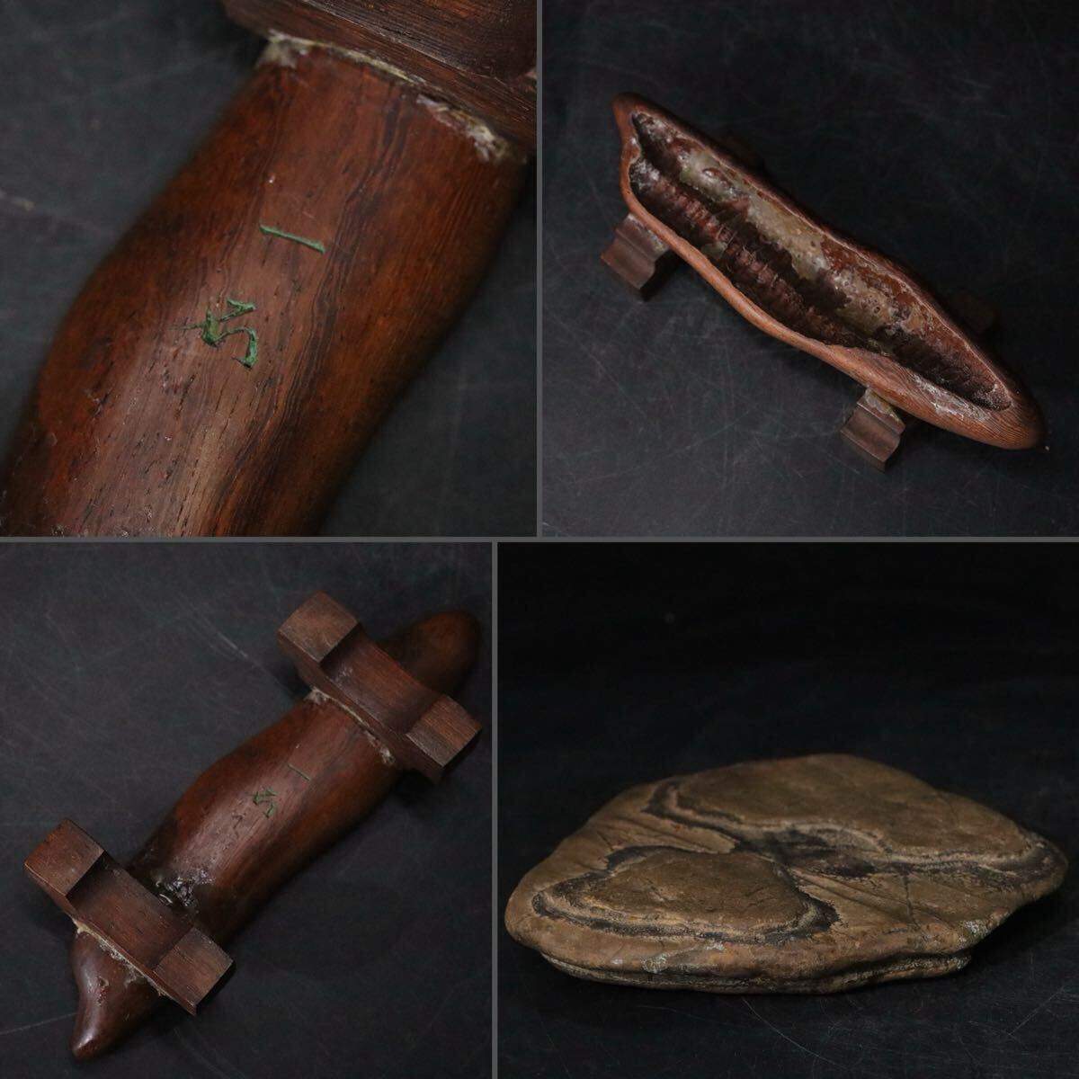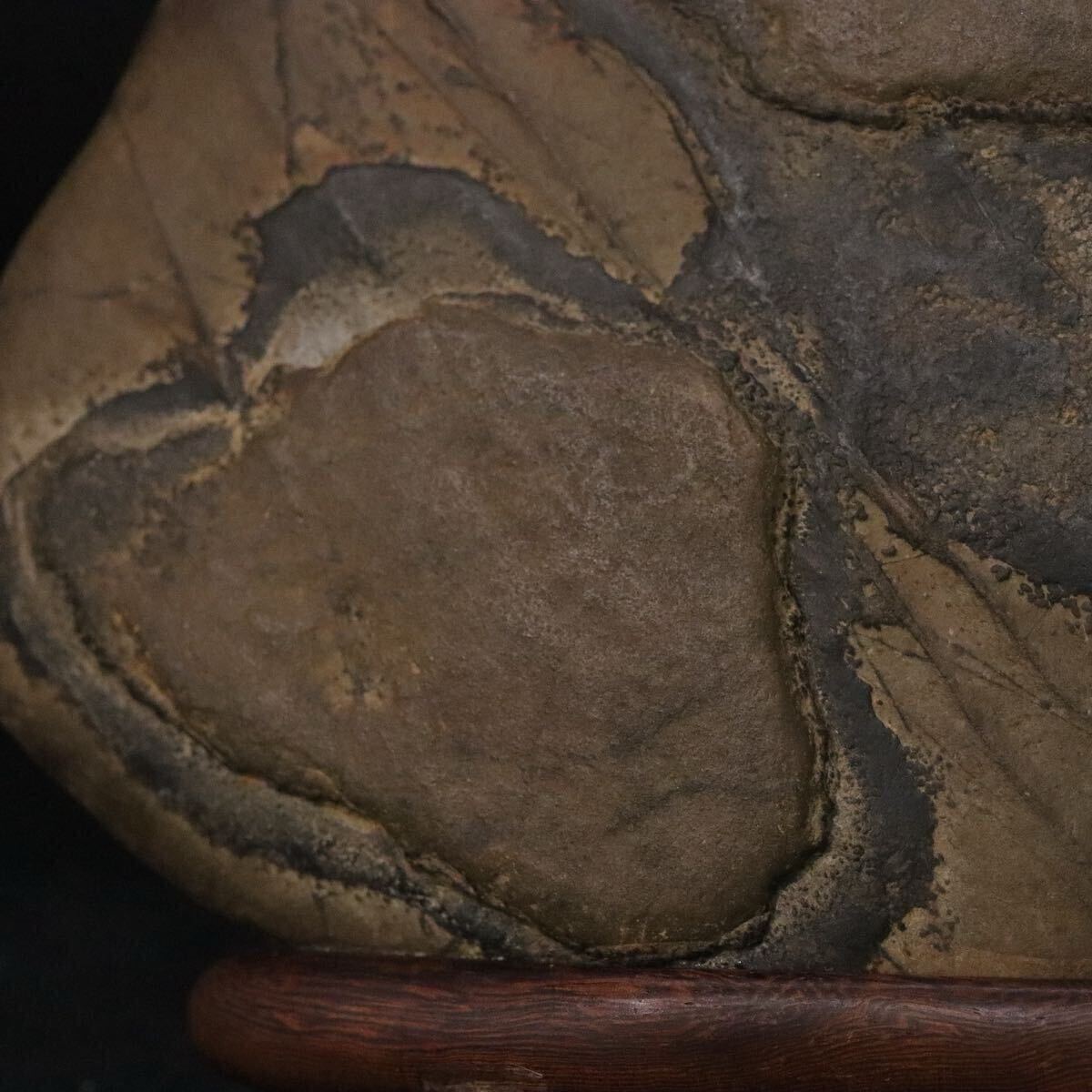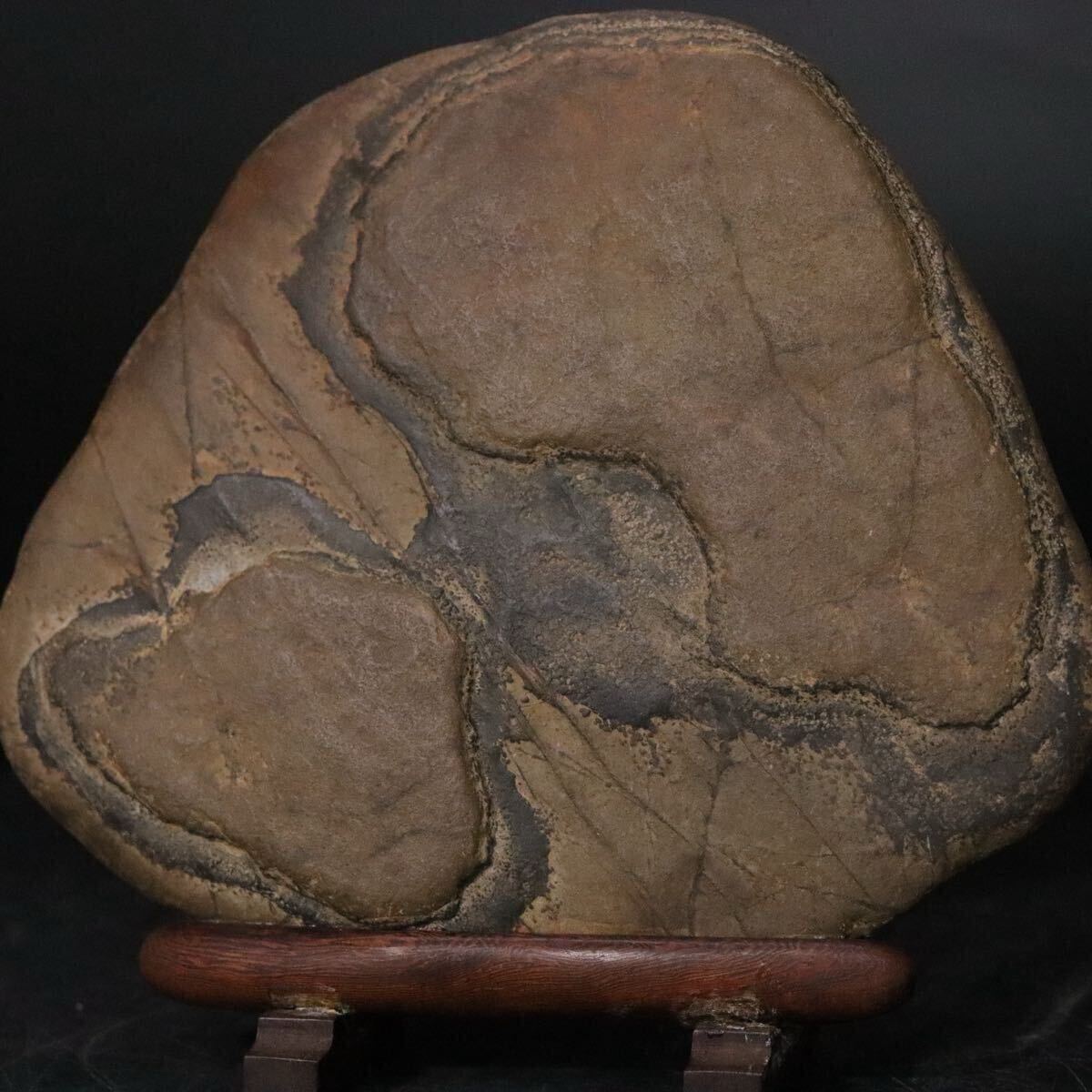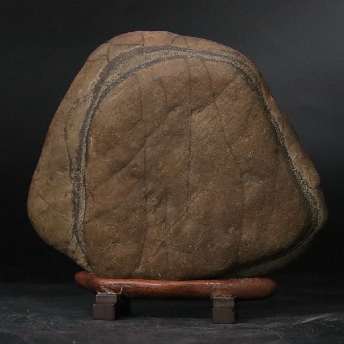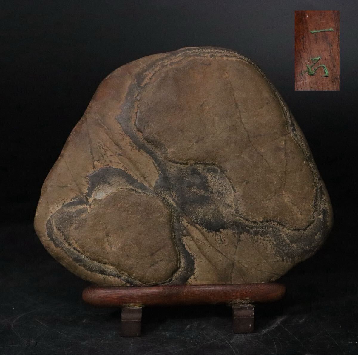 | 時代 鑑賞石 天然石 亀甲石 本体約771.3g 「 一石 」銘 木製専用台座付 / 盆石 水石 姿石 中国美術 .B463 |