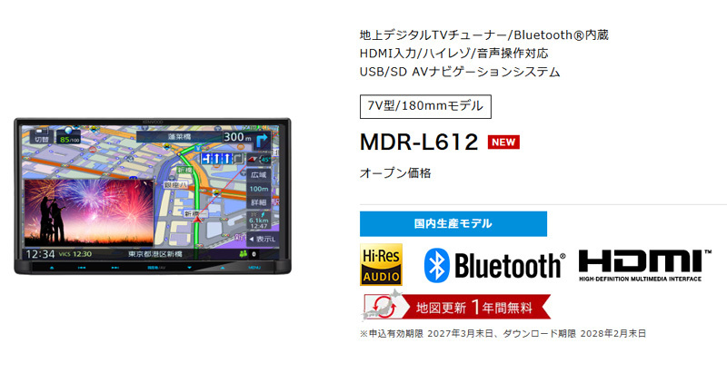 欲しい機能だけ!これからの新しいスタイル。 シンプルを楽しもう!彩速ナビのNEWスタンダードモデルと、前後録画に対応したデジタルインナーミラー型ナビ連動ドライブレコーダーのセットです。 【セット内容】 ・カーナビ本体(MDR-L612) ・ミラー型ドライブレコーダー(DRV-EMN5700) 詳しくはメーカーサイトをご覧ください。 (※出品ページ記載の製品情報や適合情報は製品発売当時の情報となります。必ずメーカーホームページで最新情報をご確認の上ご注文ください。) | ||||||