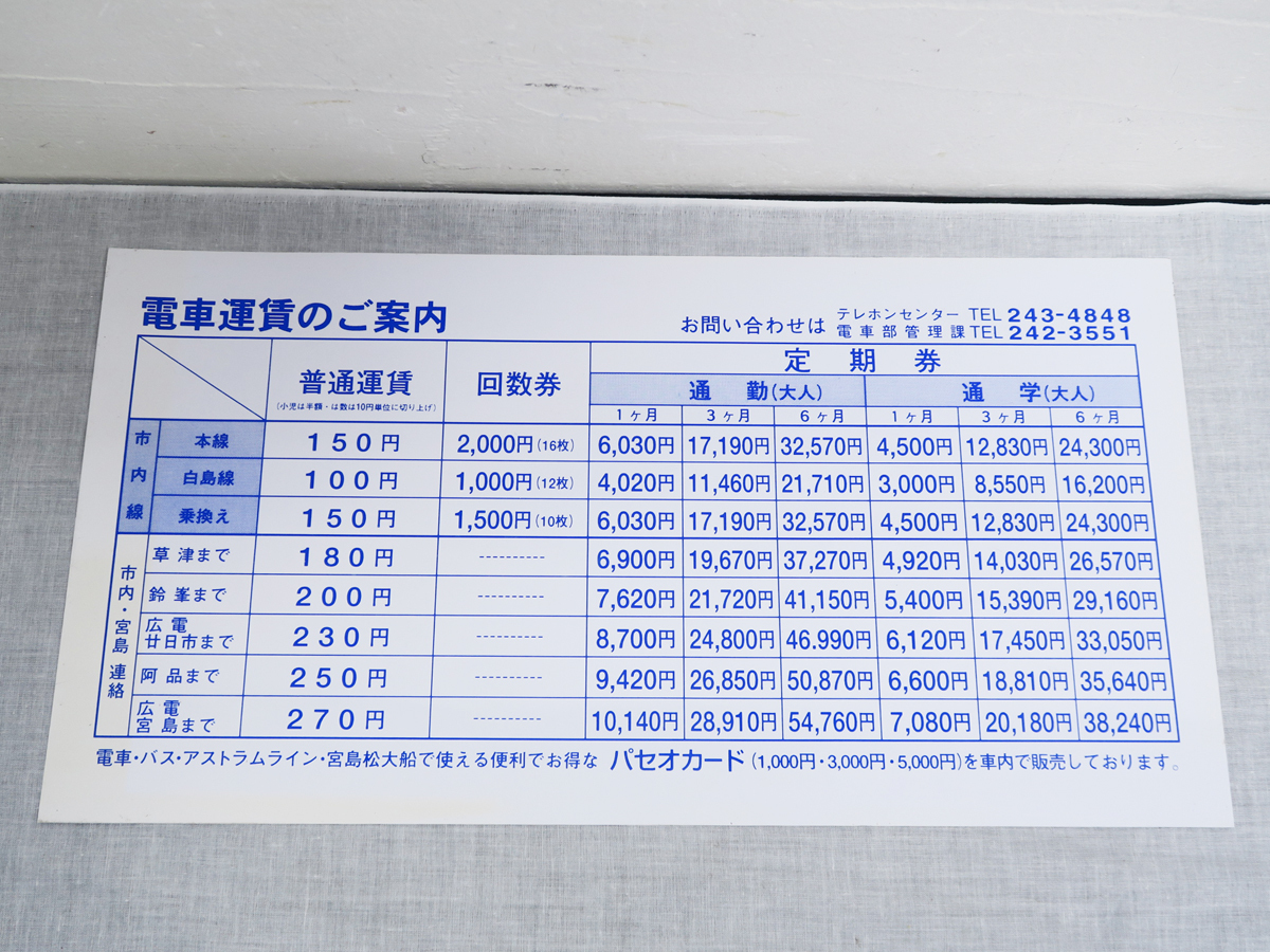 | 宮島線・電車運賃のご案内
