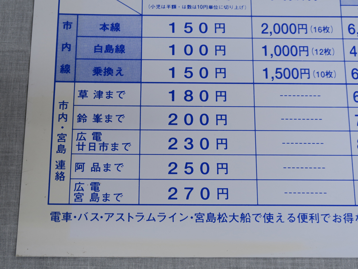 | 宮島線・電車運賃のご案内 広島電鉄 平成9年 |
