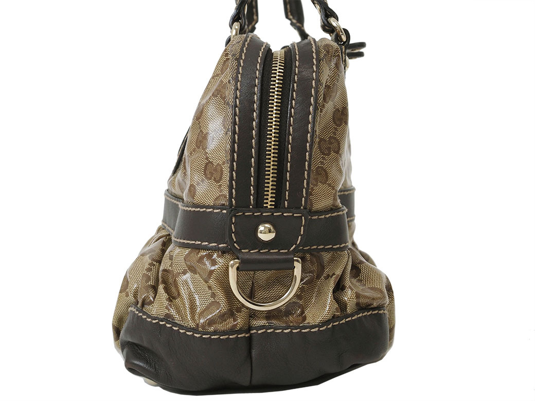 ■ グッチ GGクリスタル ハンドバッグ ベージュxダークブラウン 223962 レディース PVC|レザー ボストン ミニボストンバッグ GUCCI【中古】【ランクB】 |