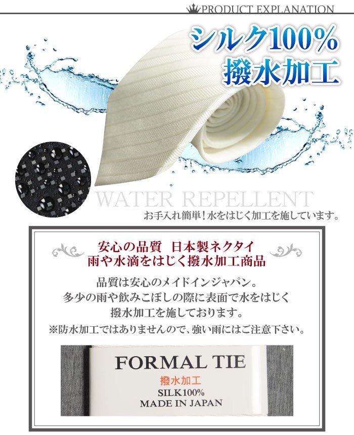 日本製 フォーマルネクタイ 白| 素材 | シルク100% ※撥水加工 |