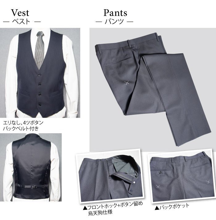 | 注意事項 | ※ポケットチーフ・フラワーホールのラペルピンは、付属しておりません。 ※商品により、製造の際のパターンが異なりますので、同サイズ表記でも、必ずこの画面上のサイズをご確認の上ご注文下さい。 ※商品写真は、パソコンのモニターやカラー設定、お部屋の照明、日光などにより色の変化が感じられる場合がございます。 予めご了承下さい。 ※当店では環境に配慮した簡易包装をおこなっております。 |