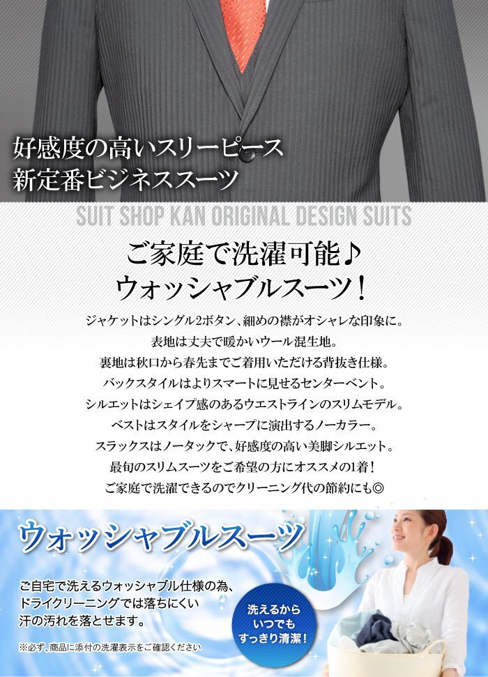 秋冬 シングル2ツボタン スリム 3ピーススーツ| 細身モデル | |