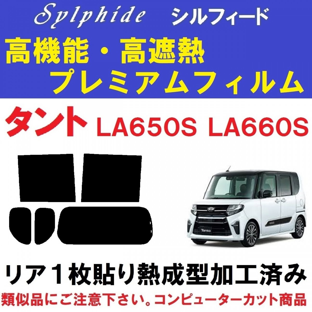 LA650S・LA660S タント タントカスタム用『高機能・高断熱フィルム シルフィード使用』リア1枚貼り成型加工済みフィルム リア5面セットです。(専用施工液付き) ・信頼の品質と実績で永い間業務用フィルムとして選ばれ続けているIKCS製品です。 ・業務用フィルムの中で最も信頼性の高い、ベストセラー商品です。 ・詳しくはアイケーシーエス株式会社HPをご覧ください。 ※シルフィードは、ベンツ等の高級輸入車を取り扱う 全国のヤナセでも指定フィルムとして使用されている信頼性の高い商品です。 令和1年7月~ LA650S LA660S タント・タントカスタムに適合します。 ハイマウントストップランプ部分の切り抜きも出来ます(画像2) ご落札後、ご指定下さい。 ※適合などご不明な点は、お気軽にご質問下さい。 ◇◆◇施工に便利なプロ仕様のヘラセット付き商品も出品中です◇◆◇ こちら ◇◆◇精密コンピューターカット◇◆◇ 貼りやすさを最優先に各部のサイズ・形状など微調整し、改良を重ねた独自のデータを製作。 高精度な最新・大型カッティングプロッターによるカットで正確で滑らかなカットラインを再現しています。 施工業者だからわかる、貼りやすいサイズ・形状に仕上げています。 ◇◆◇リア1枚貼り成型加工済み◇◆◇ リアガラスの湾曲に合わせて熱成型加工して有りますので、平面に貼るのと同様にたるみが出ず1枚貼り出来ます。 ※最適な状態に成型加工して有りますので、ヒートガン(ドライヤー)等は不要です。 ◇◆◇専用施工液付属◇◆◇ 軽視されがちな施工液ですが、貼りやすさに大きく関わる部分になります。中性洗剤などで代用せず、必ず付属の専用施工液をご使用下さい。 濃度については車種・季節などにより変わりますので、個別にお知らせ致します。 ☆高機能・高断熱フィルム シルフィード☆ シルフィードは、太陽エネルギーの中の赤外線を大幅にカットすることで車内の温度上昇を抑え、より快適な車内環境を実現する高性能断熱カーフィルムです。 スモークの濃さとは関係なく赤外線のカット率がほぼ一定なので、お好みの濃さのフィルムで優れた断熱効果を実感できます。 赤外線吸収率の高い金属酸化物ITO(酸化インジウムスズ)からなるセラミックを採用する事で高い遮熱効果を実現しているので、遮熱効果を求める為に真っ黒やミラーと言ったフィルムを選択する必要はありません。 透明性も高く、ハードコートでキズにも強いシルフィードは長期間にわたって持続します。 「Sylphide」シルフィードの信頼性は、ベンツなどの高級外車を取り扱う全国のヤナセで指定フィルムとしても取り扱いをされています。 ☆車内の温度を上げる要因・赤外線を大幅カット☆ 赤外線は、目に見える光ではありません。車窓から入り込む太陽光の中に含まれる赤外線は車内の温度を上げる大きな原因となっています。 光の大半を遮断する様な真っ黒なフィルムや光を反射するミラー仕様のフィルムを使わなくても、シルフィードは赤外線を90%以上も遮断して車内の温度上昇を抑えます。お好みの濃さ、お好みの色のフィルムで快適な車内環境を実現し、クリアな視界を確保できる高機能フィルムです。 ■フィルムの種類■ 可視光線透過率 3% SC-7003 可視光線透過率 7% SC-7008 可視光線透過率13% SC-7015 可視光線透過率20% SC-7020 可視光線透過率30% SC-7030 可視光線透過率46% SC-7045 ■全商品、キズに強いハードコート・紫外線(UV)カット率99% 赤外線(IR)カット率92%です。 ※可視光線透過率が低くなるほどフィルムの色は濃くなります。 サイドとリアで濃さを替えたり等、可能です。 部分的にフィルムが必要になった場合、単品販売も承ります。 他にもタント用フィルム、各種出品中です。こちらもご覧ください。 下記のOEM車両にも適合します。 ・スバル・シフォン(LA650F/LA660F) ご不明な点など有りましたら、お気軽にご質問下さい。 | ||