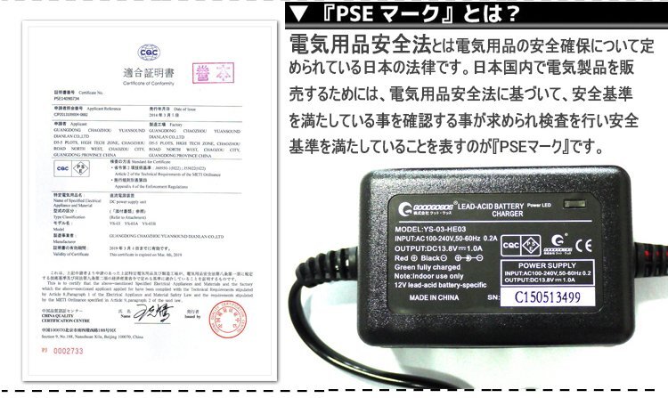 | 資格証書 | 欧州:CE規格/北米:UL規格/日本:PSE規格/中国:CCC規格 | 充電可能バッテリ | 12Vバッテリー、密閉型、開放型、シールド型 |
