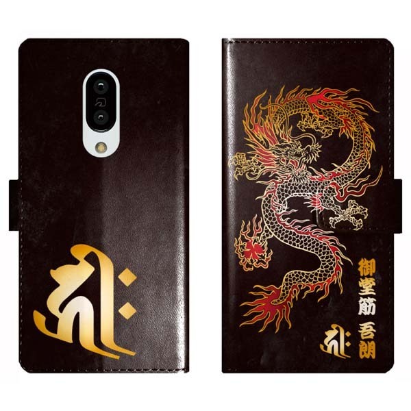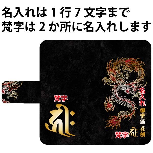 AQUOS zero2 SH-01M SHV47 対応、干支を表す梵字と龍の和柄デザインに名入れができる手帳型ケース