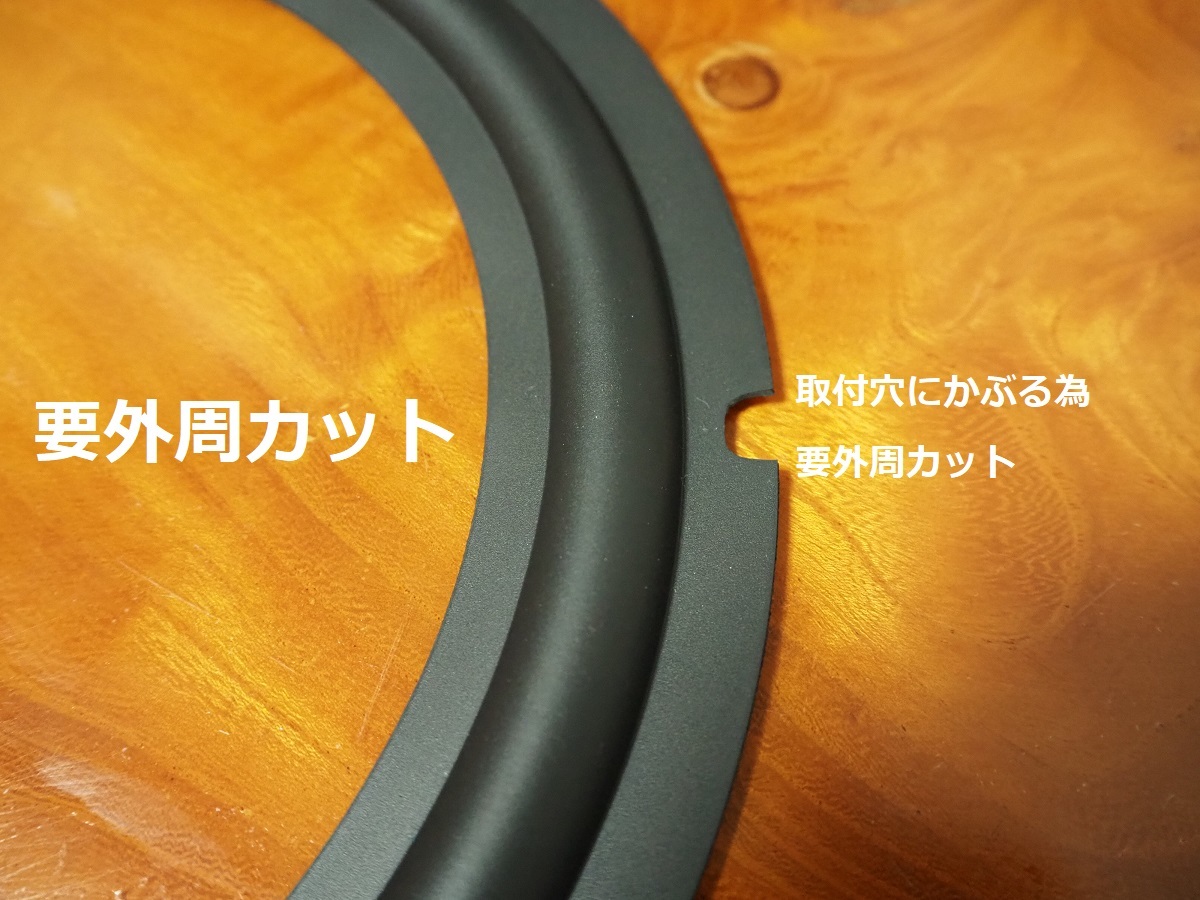 | ●新品のソフトゴムエッジ2枚です。取付穴にかぶる為、外周を画像2のように加工する必要があります。 ●付属の接着剤は白色ですが、乾くと透明になります。乾いた後もカチカチにならず、柔軟性があり、又乾いた後も張り付けることができる優れものです。 ●主成分はアクリルで、ゴムやウレタン、金属部にも使うことができます。スピーカーのプロの設計士の方も使っていますので安心してご利用ください。 ●容量は大容量の35mlです。エッジ張替え後も半分以上余り、いろいろな用途にご使用頂けます。エッジの張替え時にこれ以外の接着剤は使えないと言って頂けることを目標にしています。是非お試しください。 ●エッジの張替え時にこれ以外の接着剤は使えないと言って頂けることを目標にしています。是非お試しください。 ●エッジの張替えにつきましてはどなたでも上手に張替えられるよう下記で詳しくご紹介しています。参考にしてください。 | |||