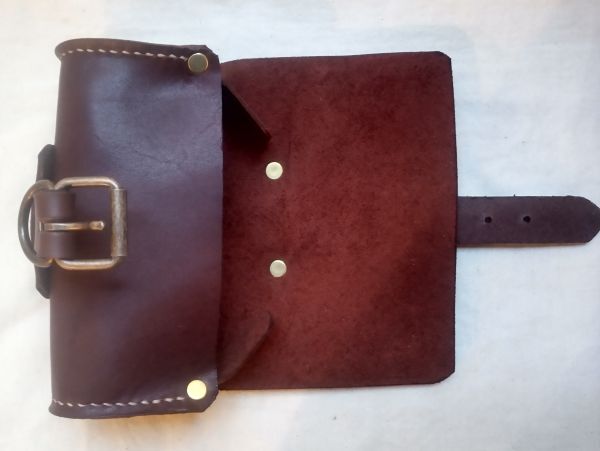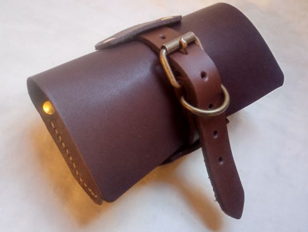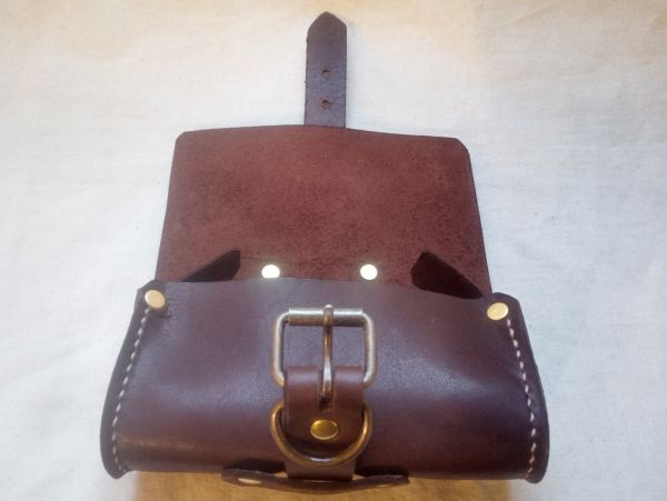 軽めの素材感の姫路産ダークブラウン牛革をメインに ベルト部を厚手の姫路産ブラウンヌメ革で切り替えました。 少しシワやキズ 汚れ、色ムラ、カシメのズレ等ある場合がありますので 訳あり品として出品しております。 細かいことを気になさらない方に。