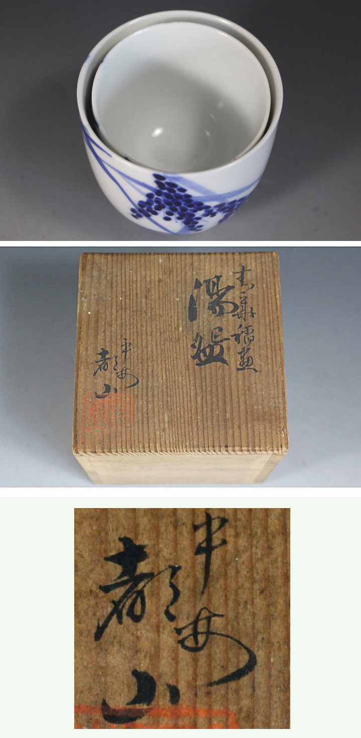 染付 稲穂絵入れ子 湯呑み 共箱です。