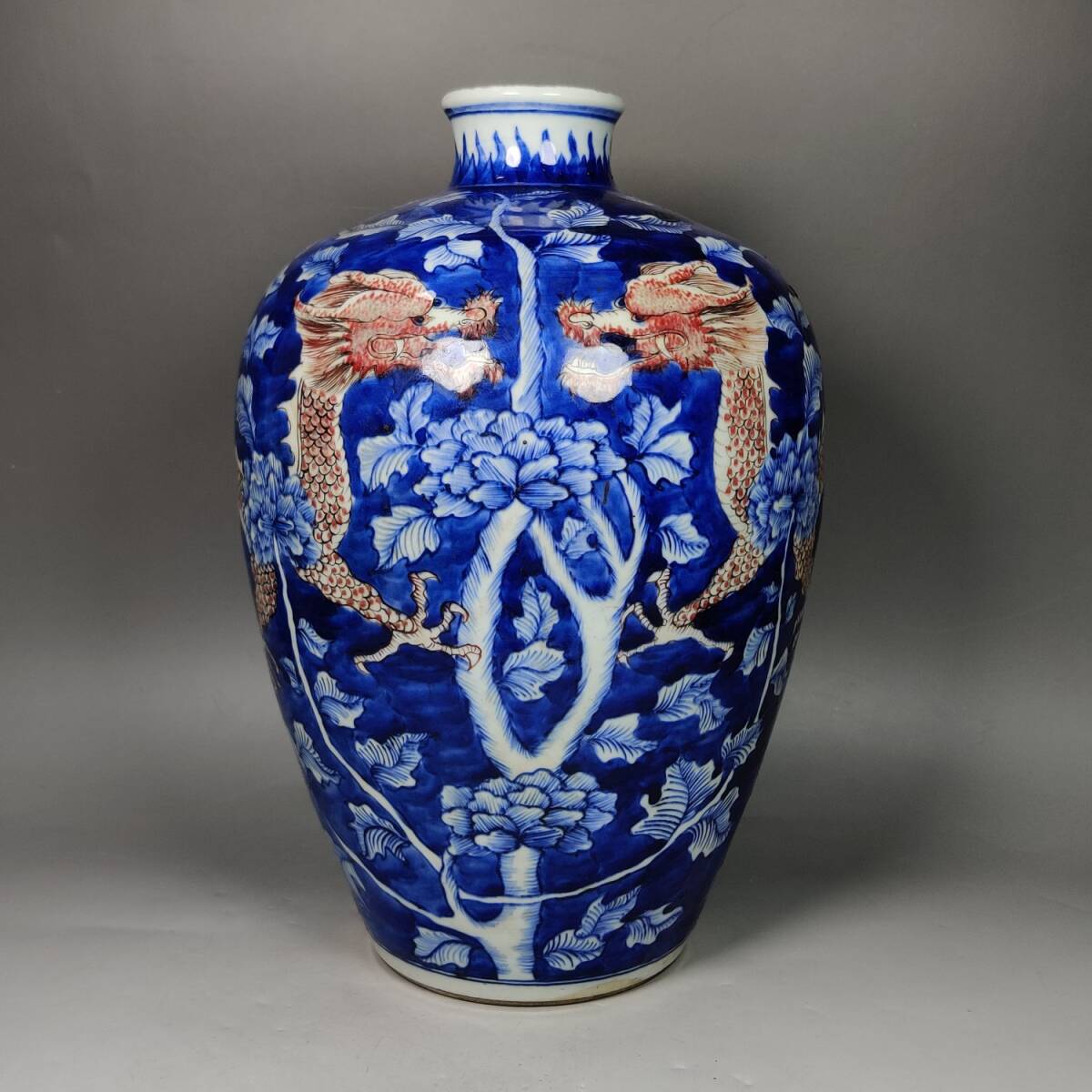 zz8|8162 中国磁器 陶芸 磁器『清の青花釉裏紅梅瓶です』施釉陶 古代工芸