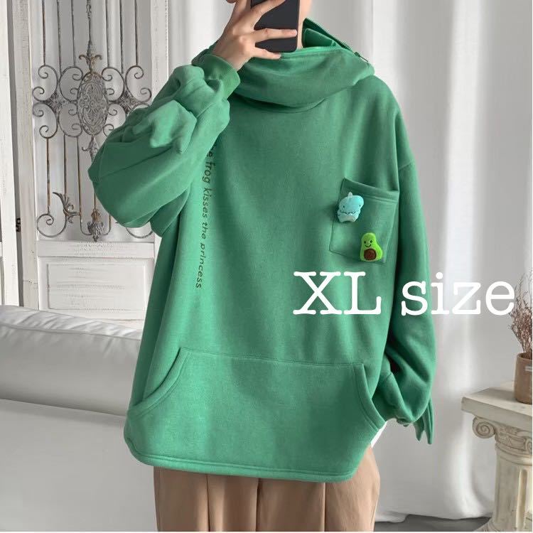 パーカー カエル フード トップス ビッグシルエット 長袖 ユニセックス 緑 グ
