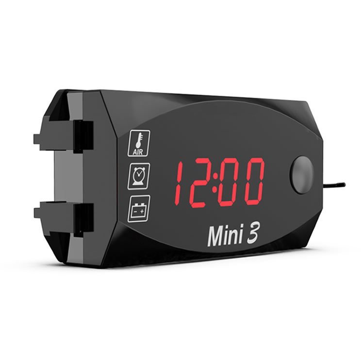 バイク用デジタルメーター 電圧計/温度計/時計 3in1 防水 防塵 悪天候も安