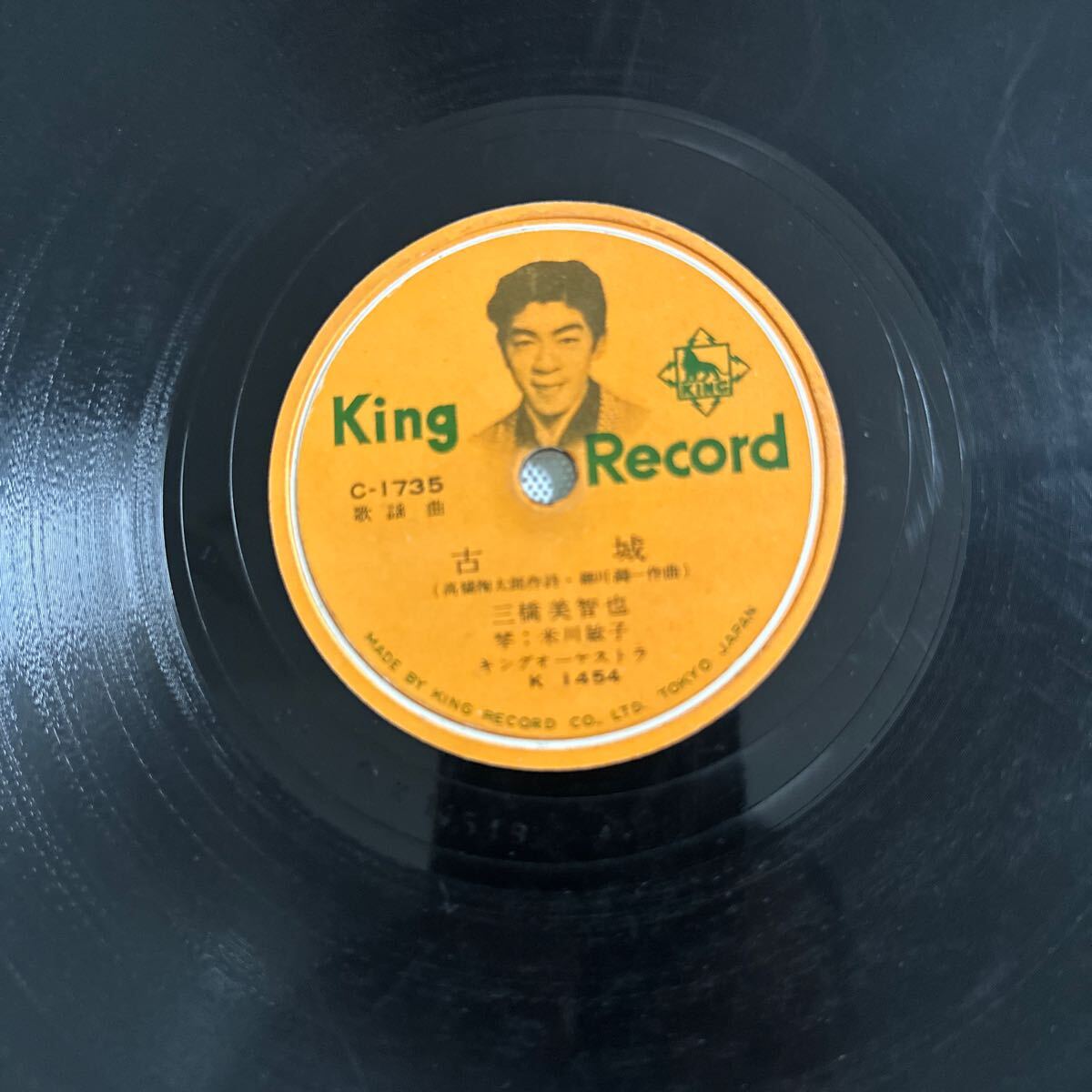 SP盤 歌謡曲 古城 祭り太鼓 三橋美智也 キング C-1735 珍しいオレンジ