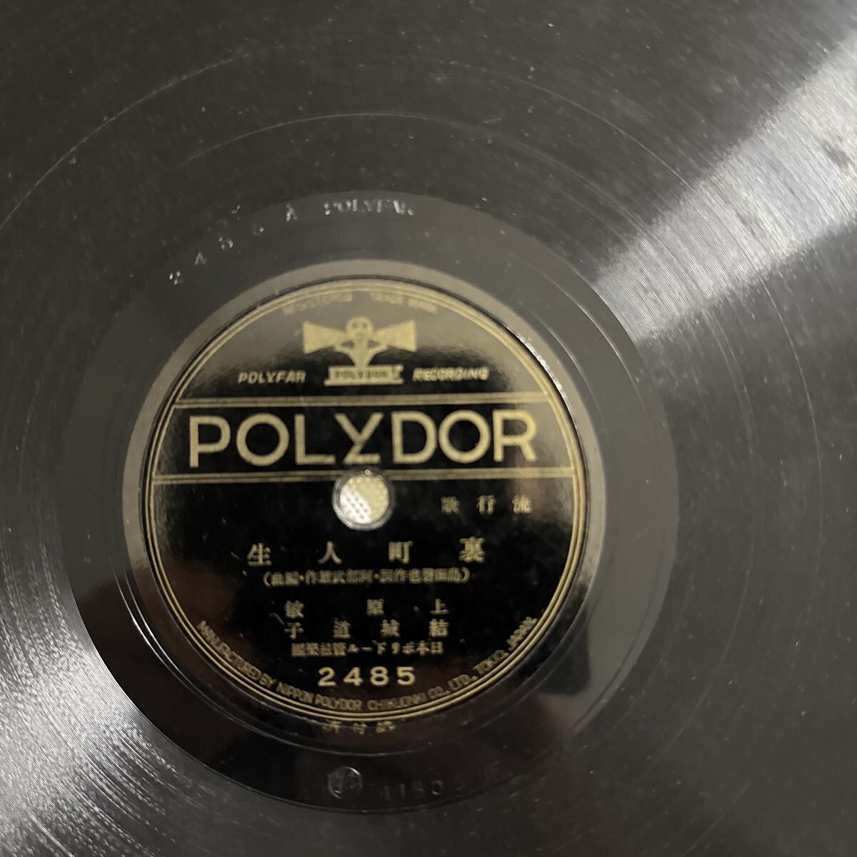 SP盤 裏町人生 上原敏・結城道子 霧の波止場 上原敏 ポリドール 2485 元
